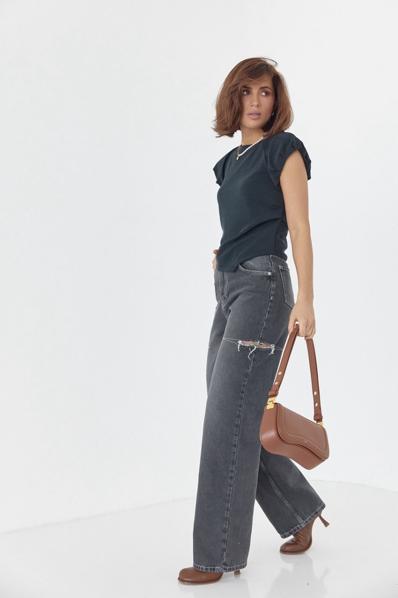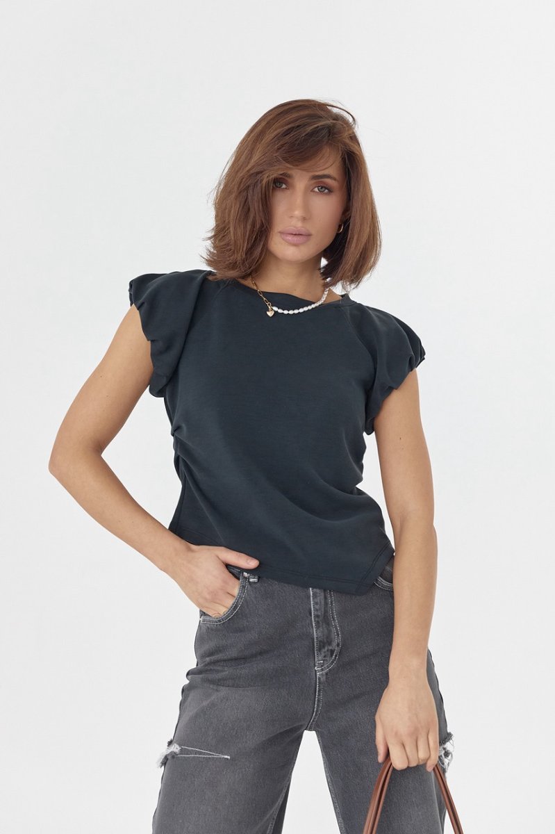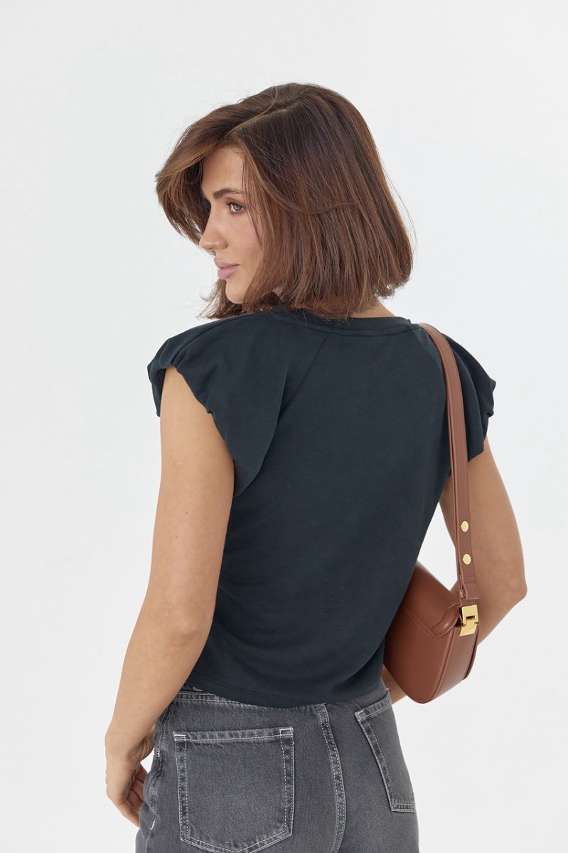 Жіноча футболка з пишними рукавами 28375 темно-синя