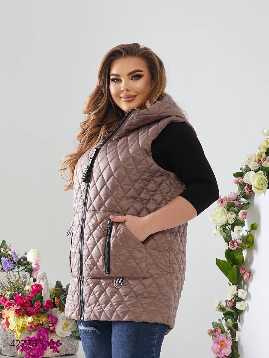 Жіночий стьобаний жилет плюс сайз 42776 коричневий