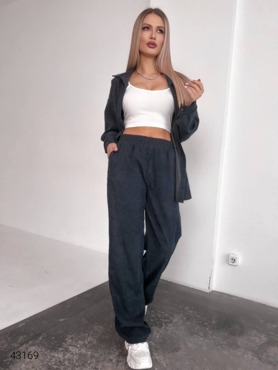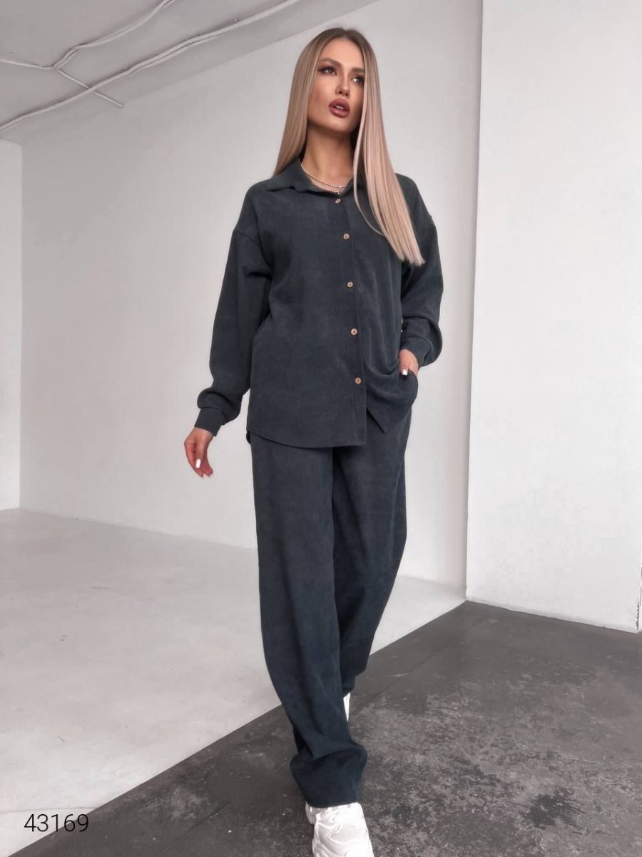 Жіночий брючний костюм з сорочкою 43169 темно-сірий