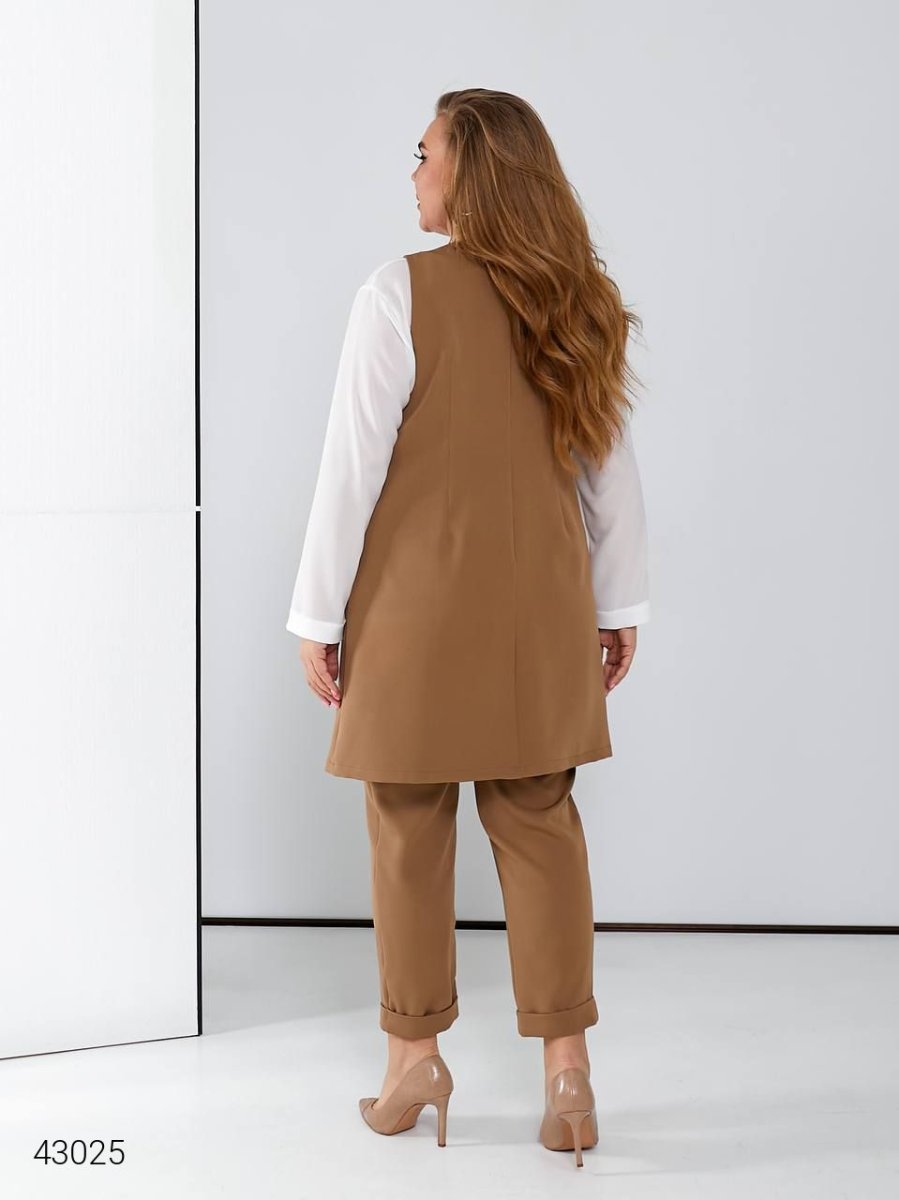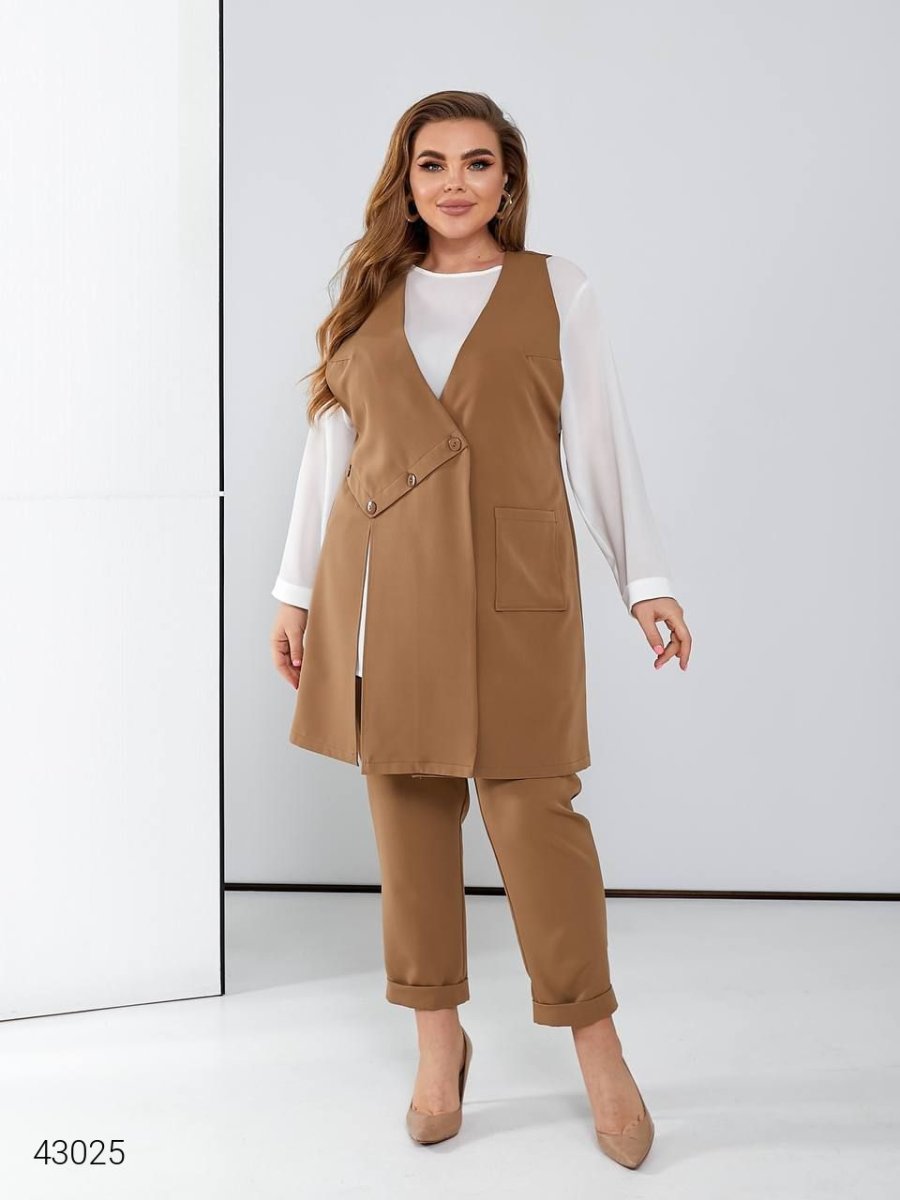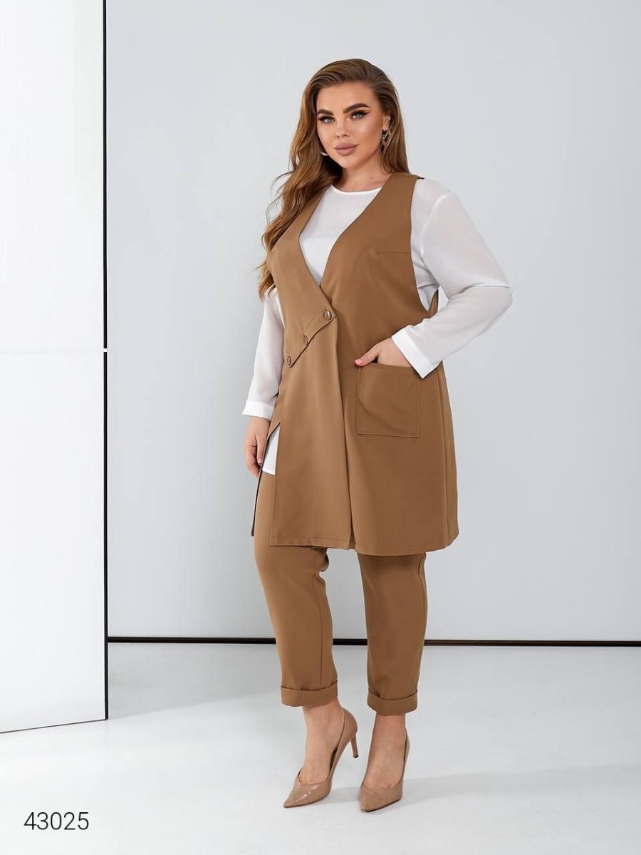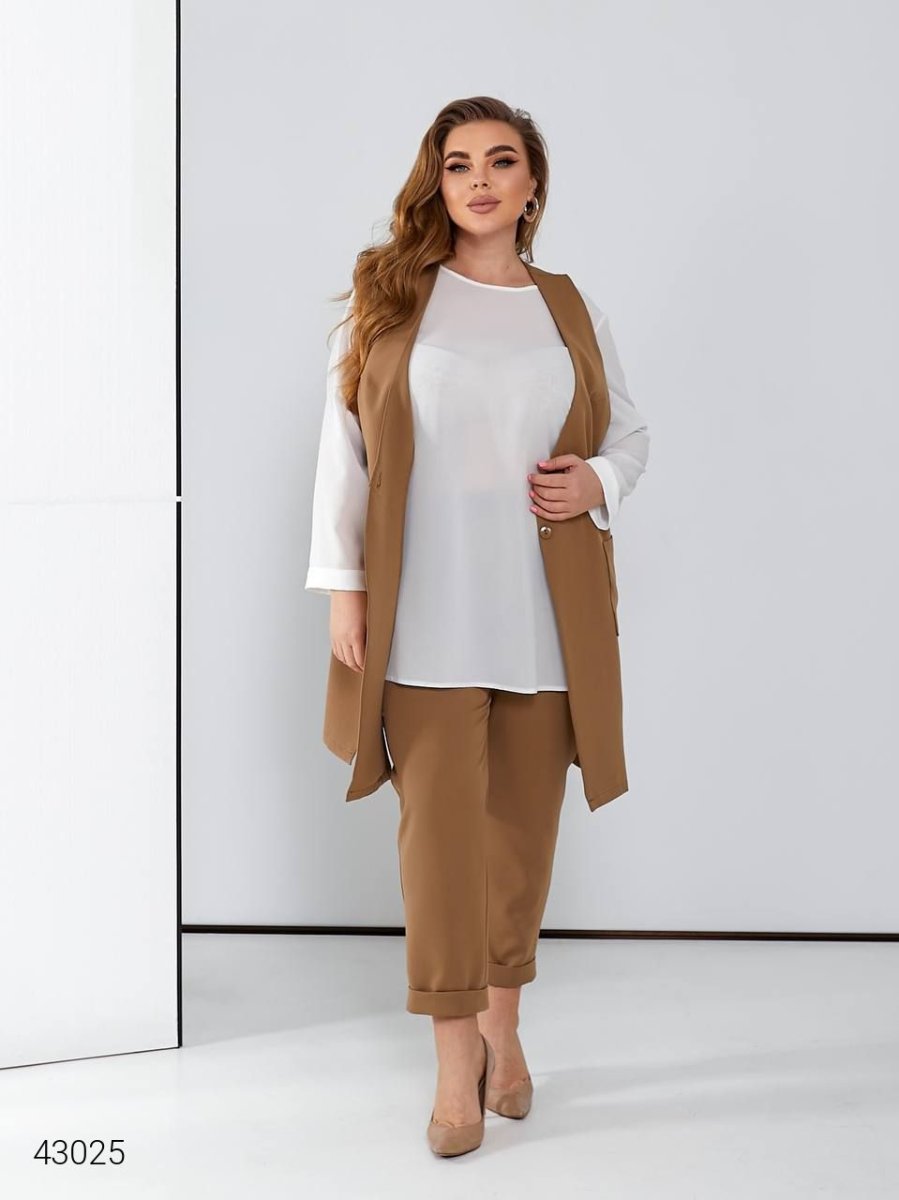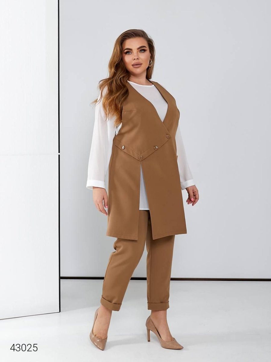 Жіночий брючний костюм трійка. Жилет, блуза та штани.