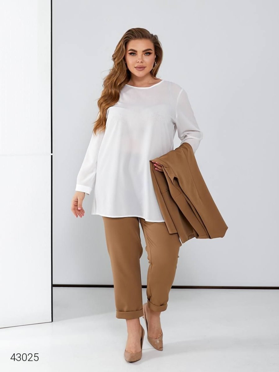 Тканина: костюмний трикотаж, блуза: креп-шифон