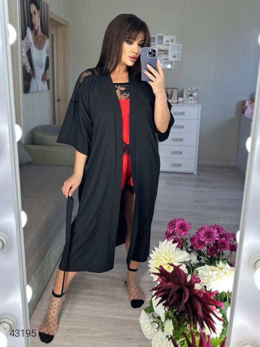 Халат жіночий з мереживом. Плечі халата виконані ніжним мереживом. Тканина: софт, не тягнеться. Склад: поліестер -100%.