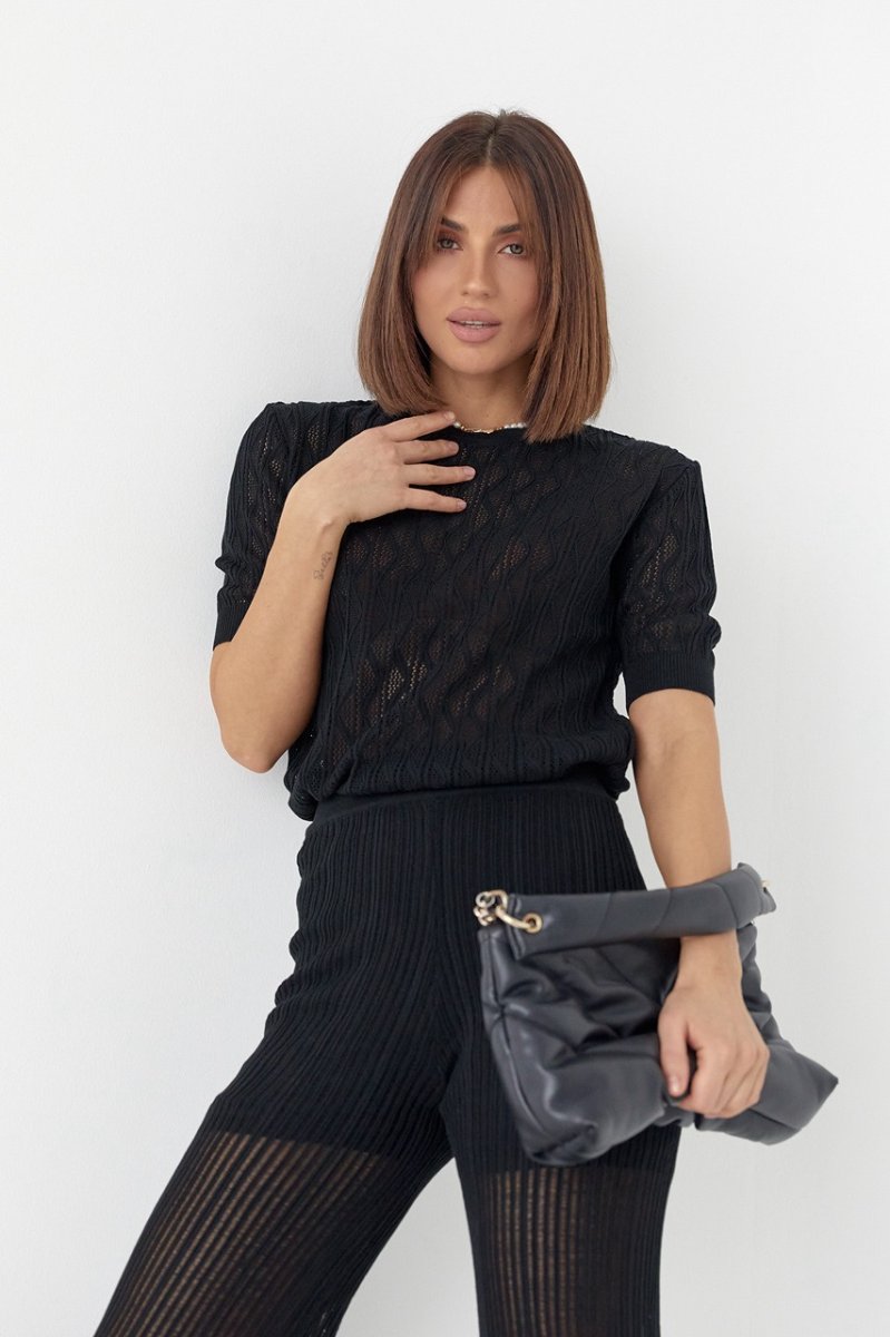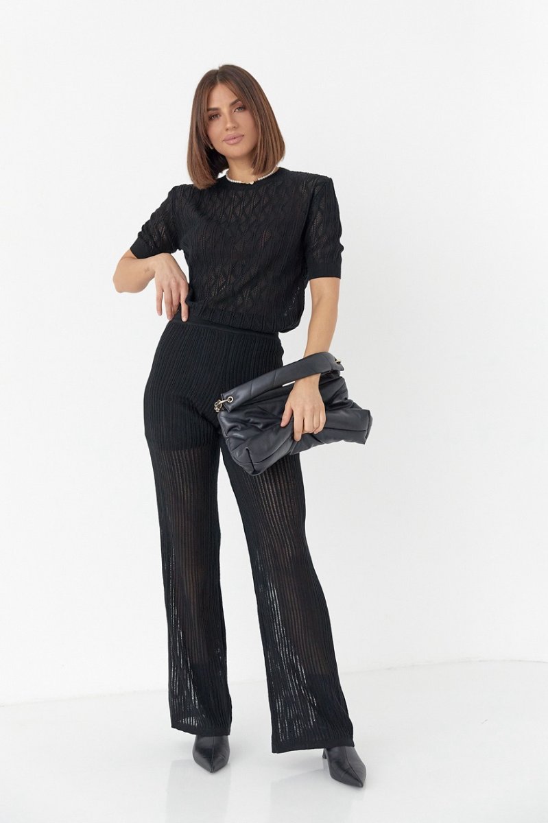Жіночий костюм з ажурної в'язки - 023128 чорний