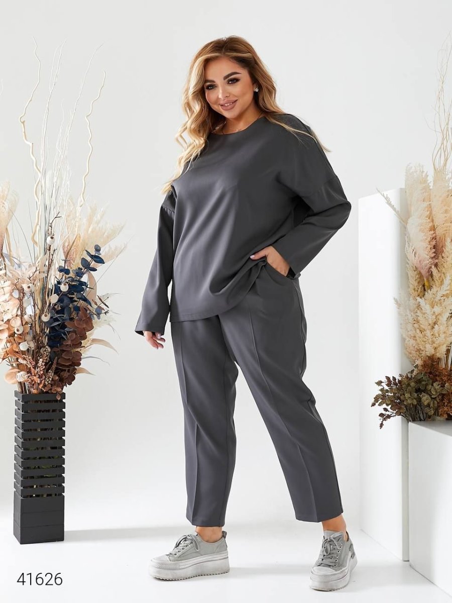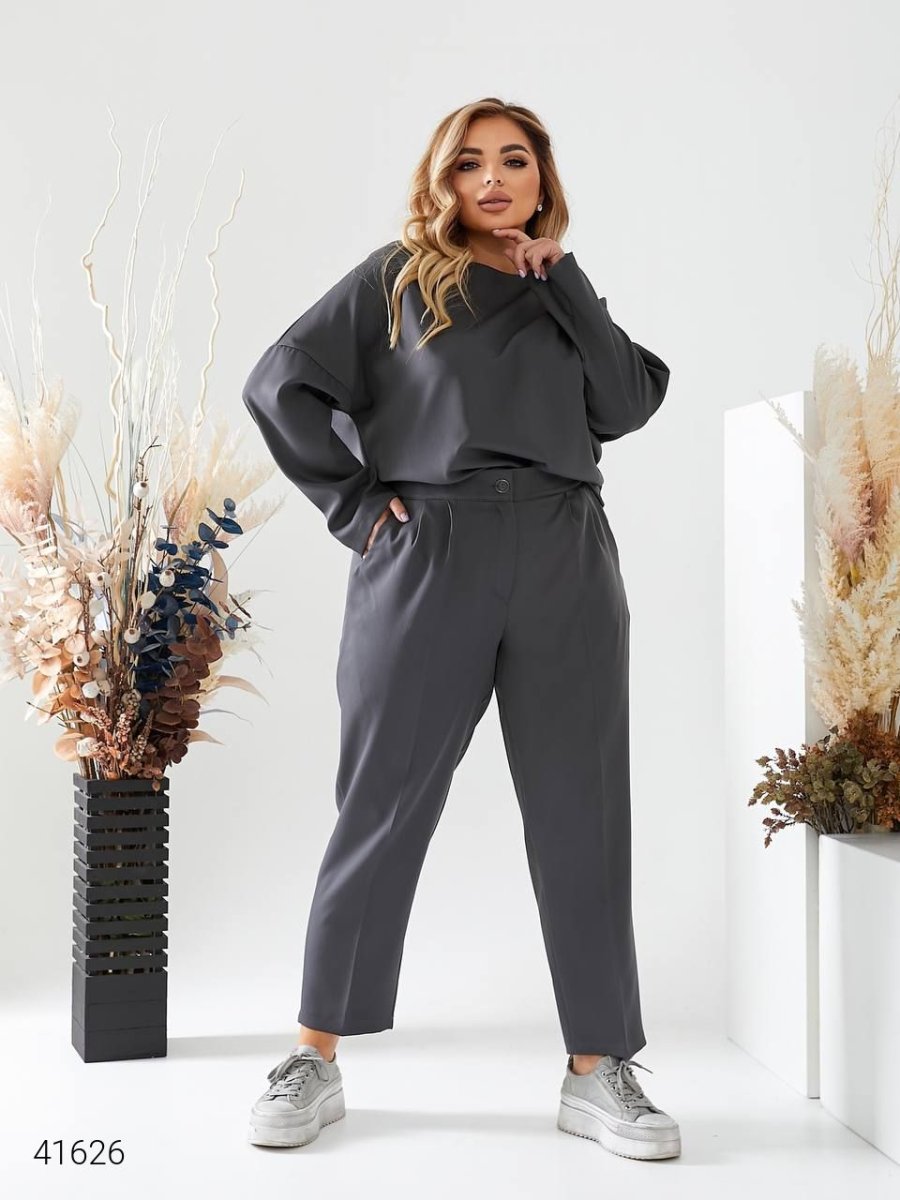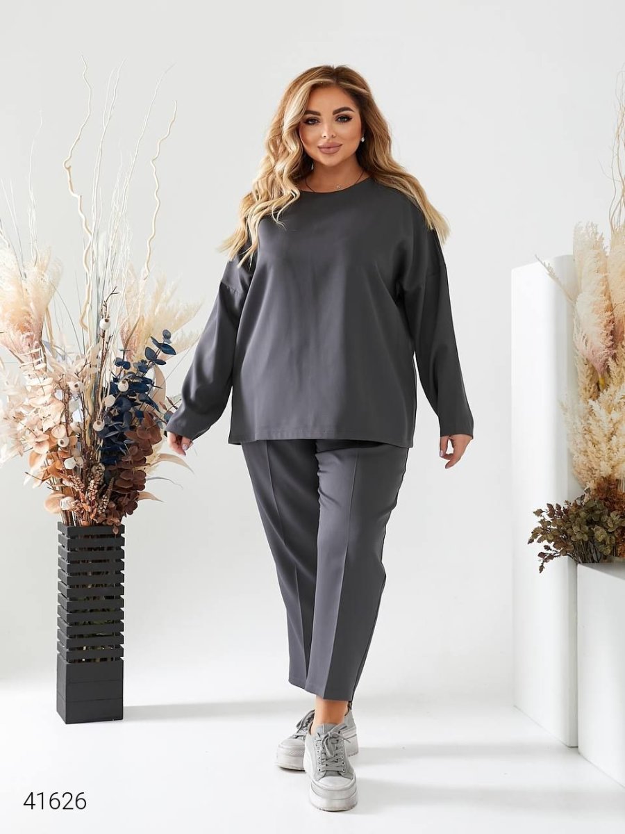 Жіночий костюм з брюками 41626 темно-сірий