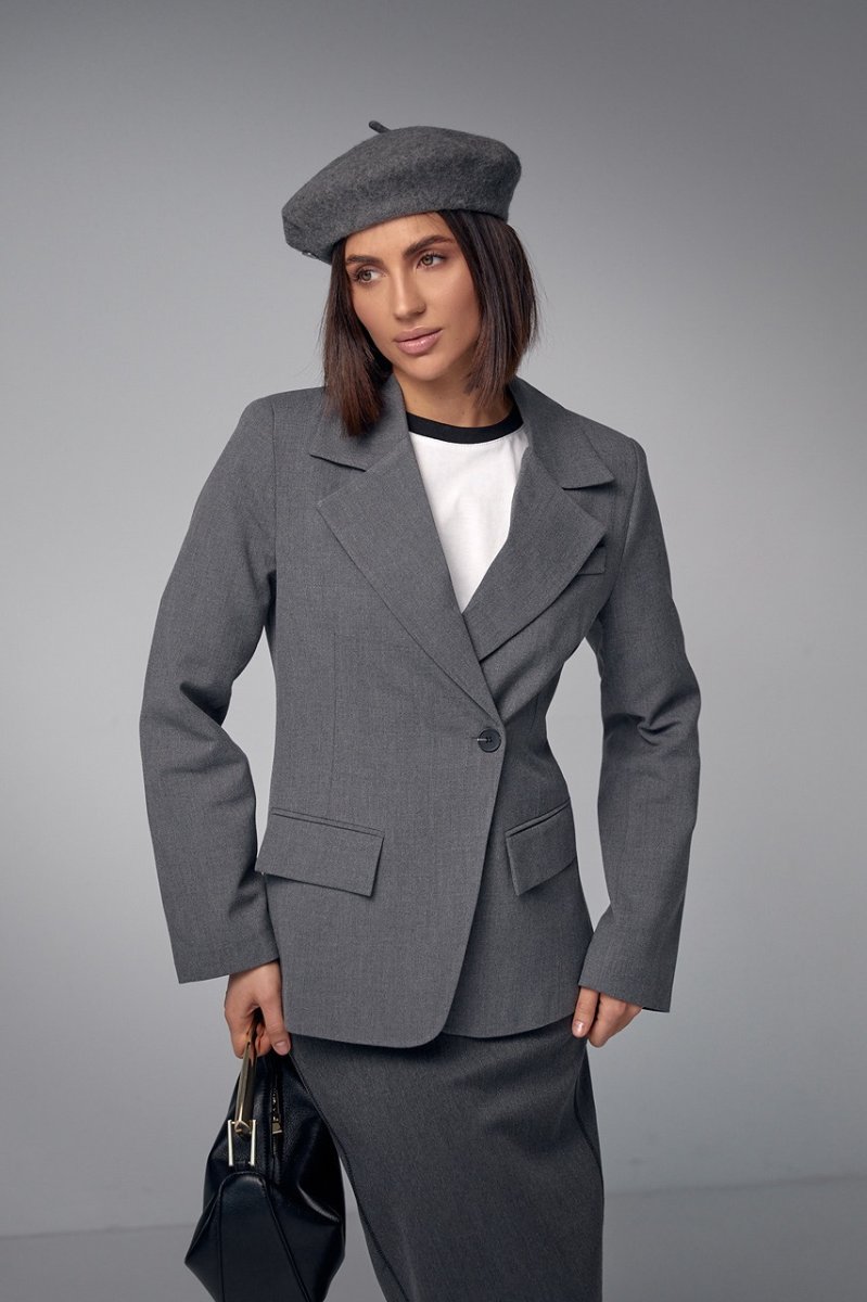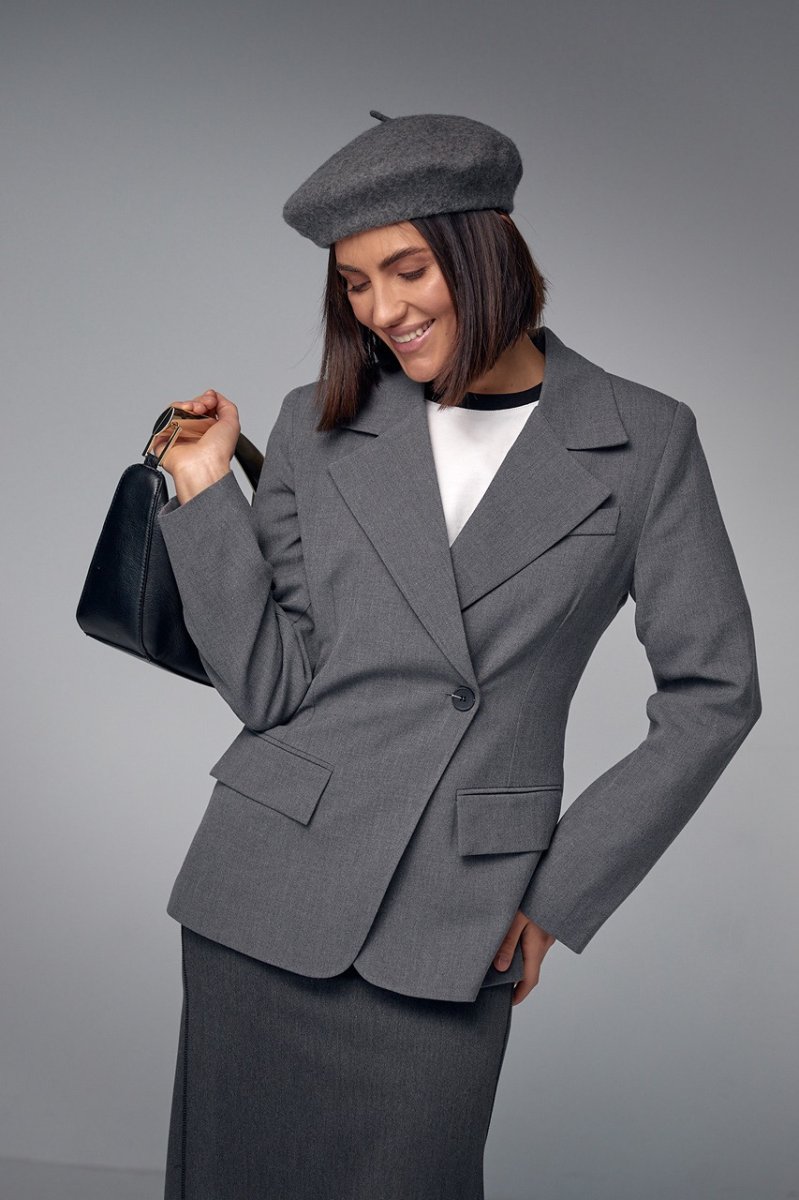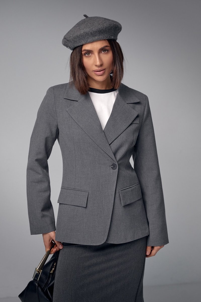 Жіночий однобортний піджак приталеного крою - 11017 сірий