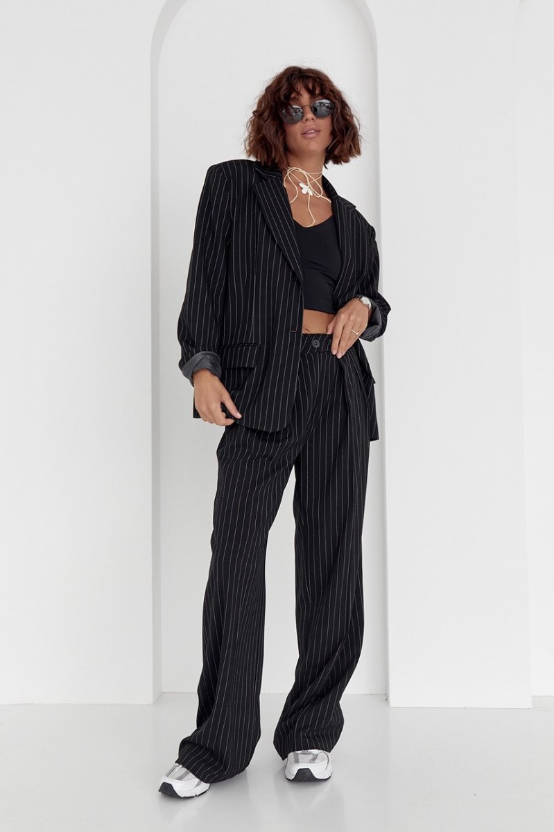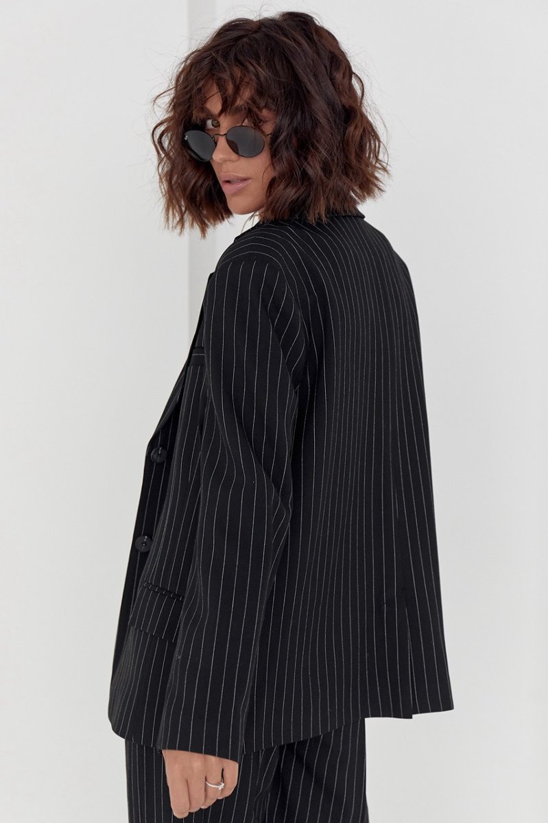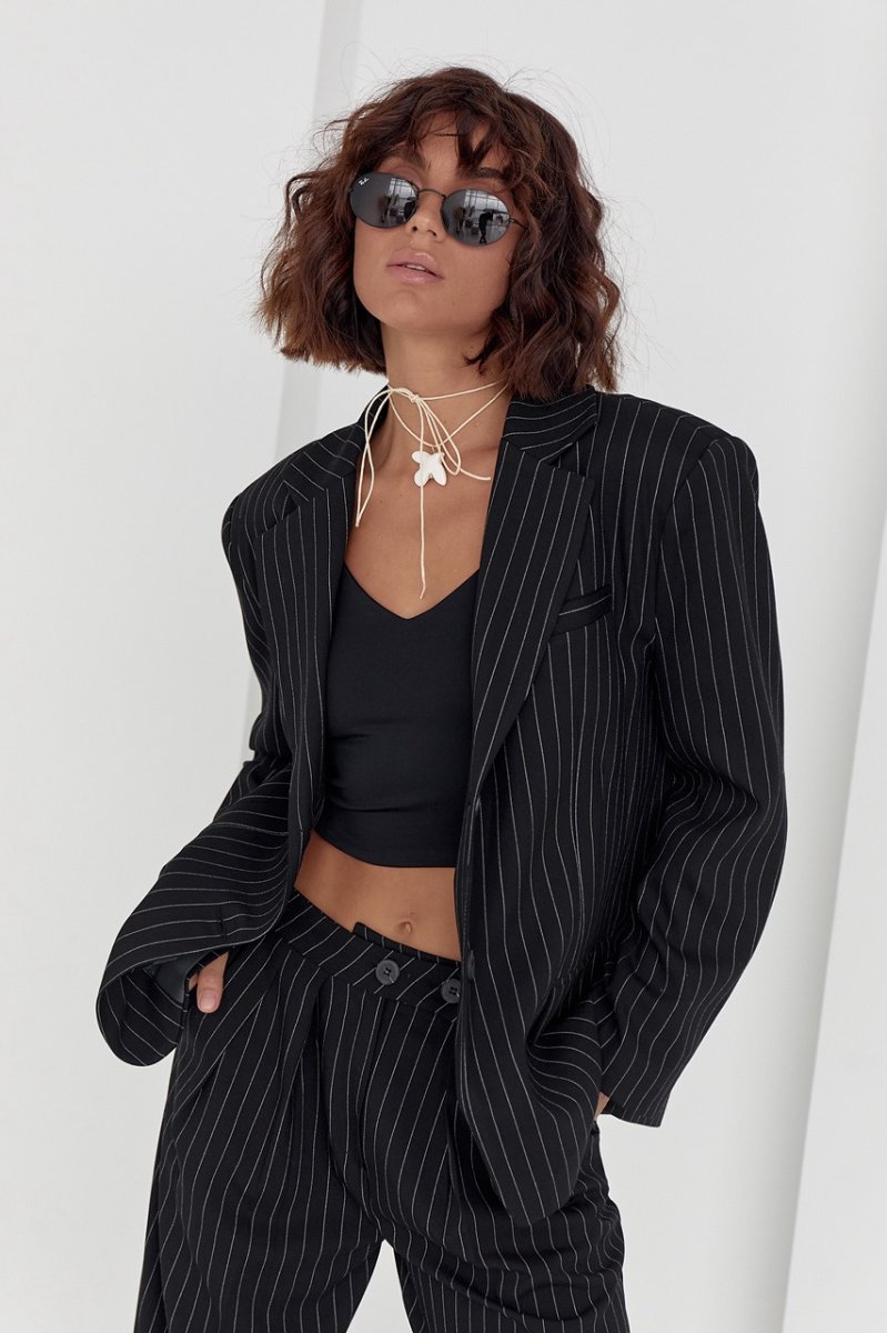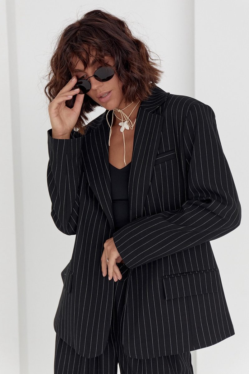 Хочеш змінити своє вбрання і додати до нього модний акцент - вибирай стильний жіночий піджак на сайті інтернет-магазину! Ця смугаста модель ідеально підійде під наші брюки, а також її можна поєднувати з будь-яким однотонним одягом з нашого сайту або з твого гардеробу.