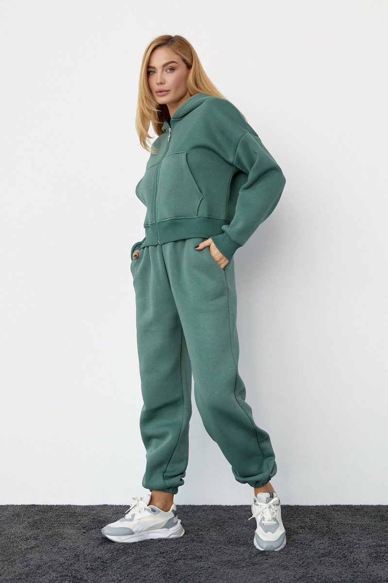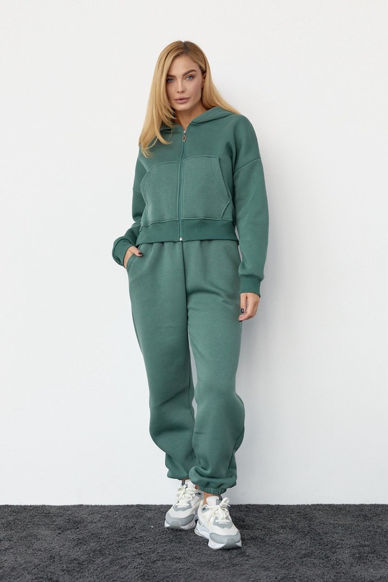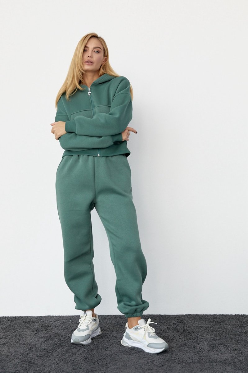 Жіночий спортивний костюм з начісом на блискавці - 23161 зелений