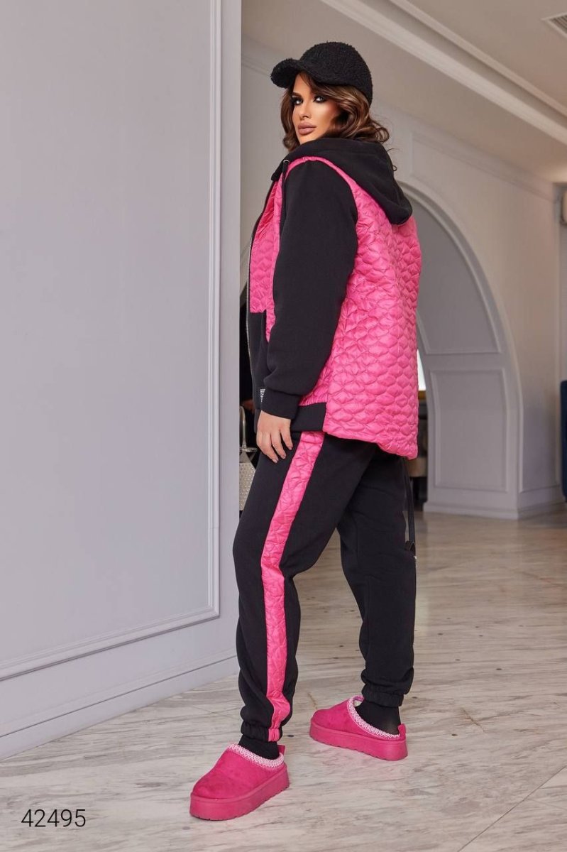 Жіночий теплий костюм.  Кофта застібається на блискавку,  із зручними кишенями та капюшоном. Штани з високою посадкою, низ на манжеті (гумка).