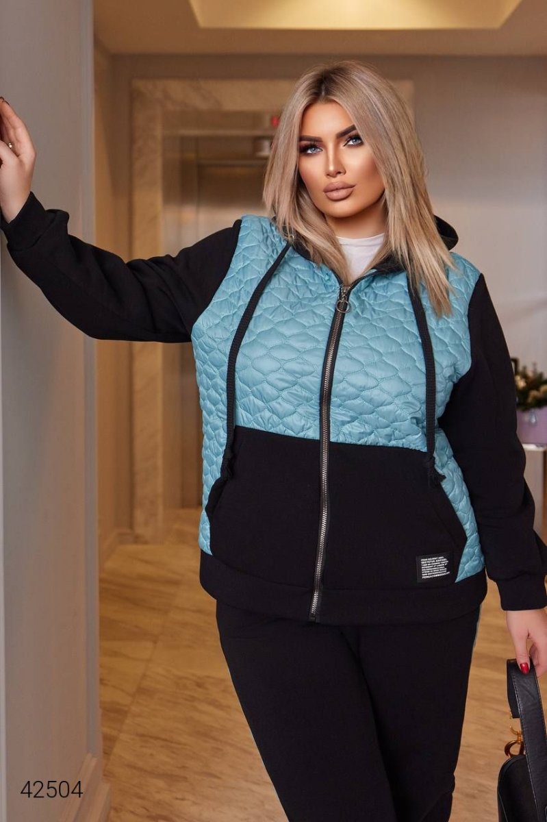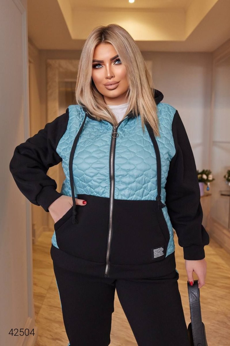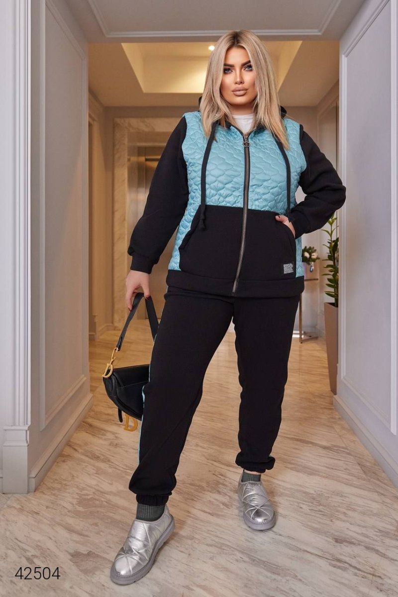 Жіночий теплий костюм.  Кофта застібається на блискавку,  із зручними кишенями та капюшоном. Штани з високою посадкою, низ на манжеті (гумка).