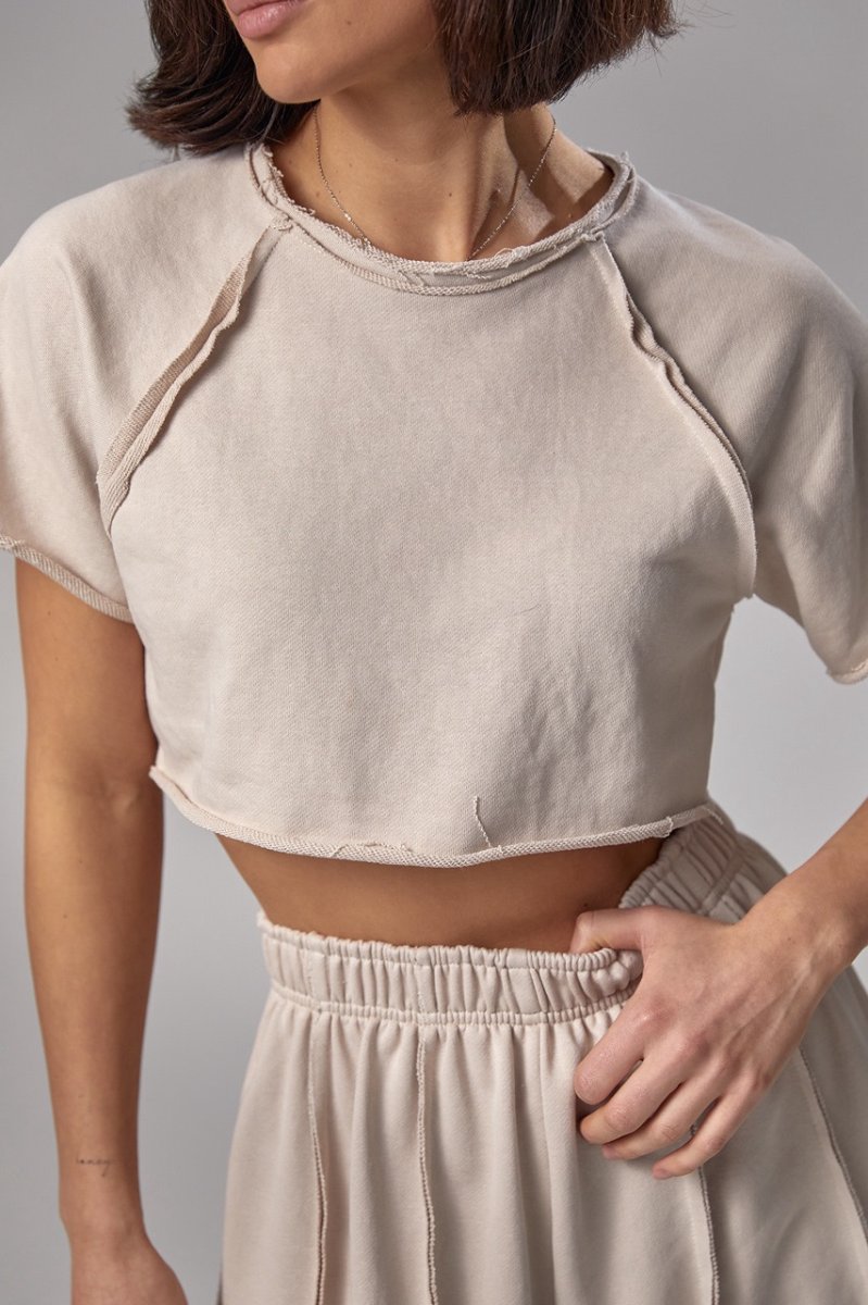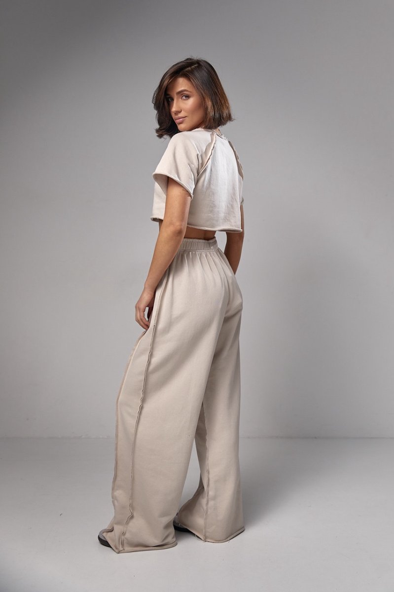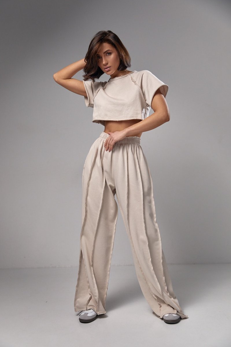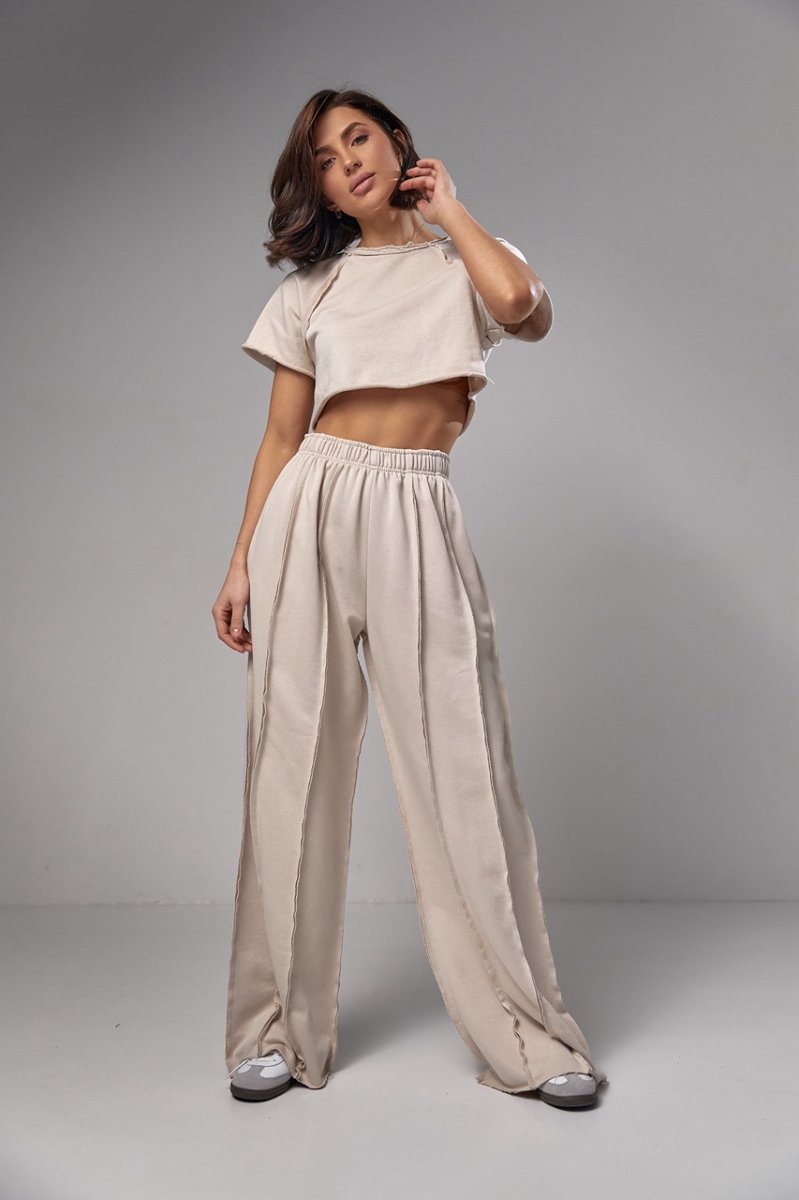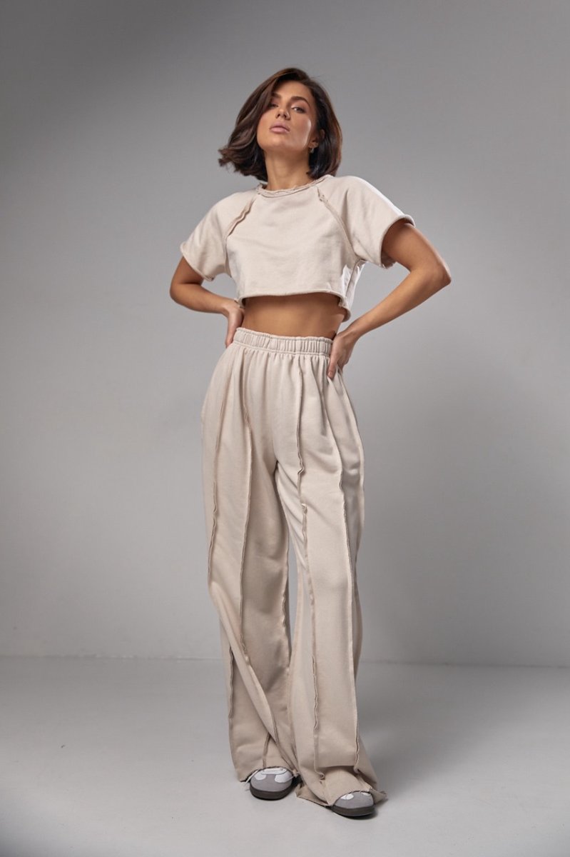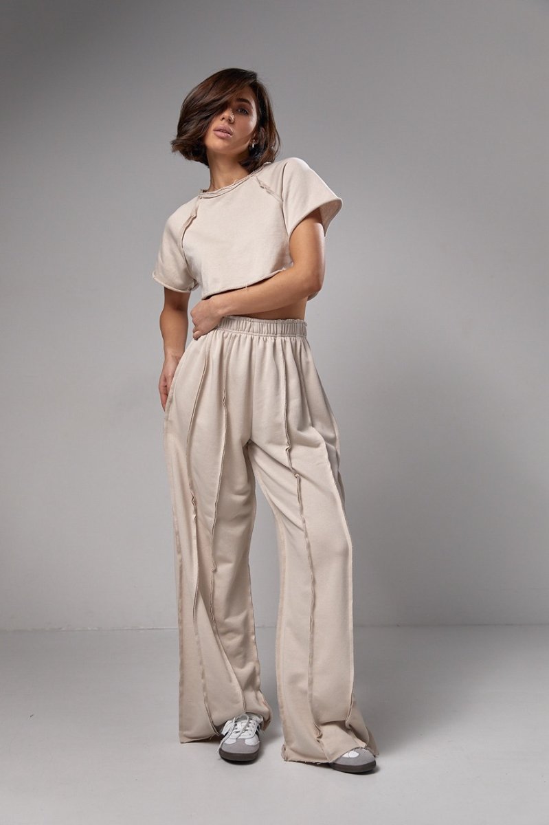 Трикотажний жіночий костюм в стилі grunge - 24151 бежевий