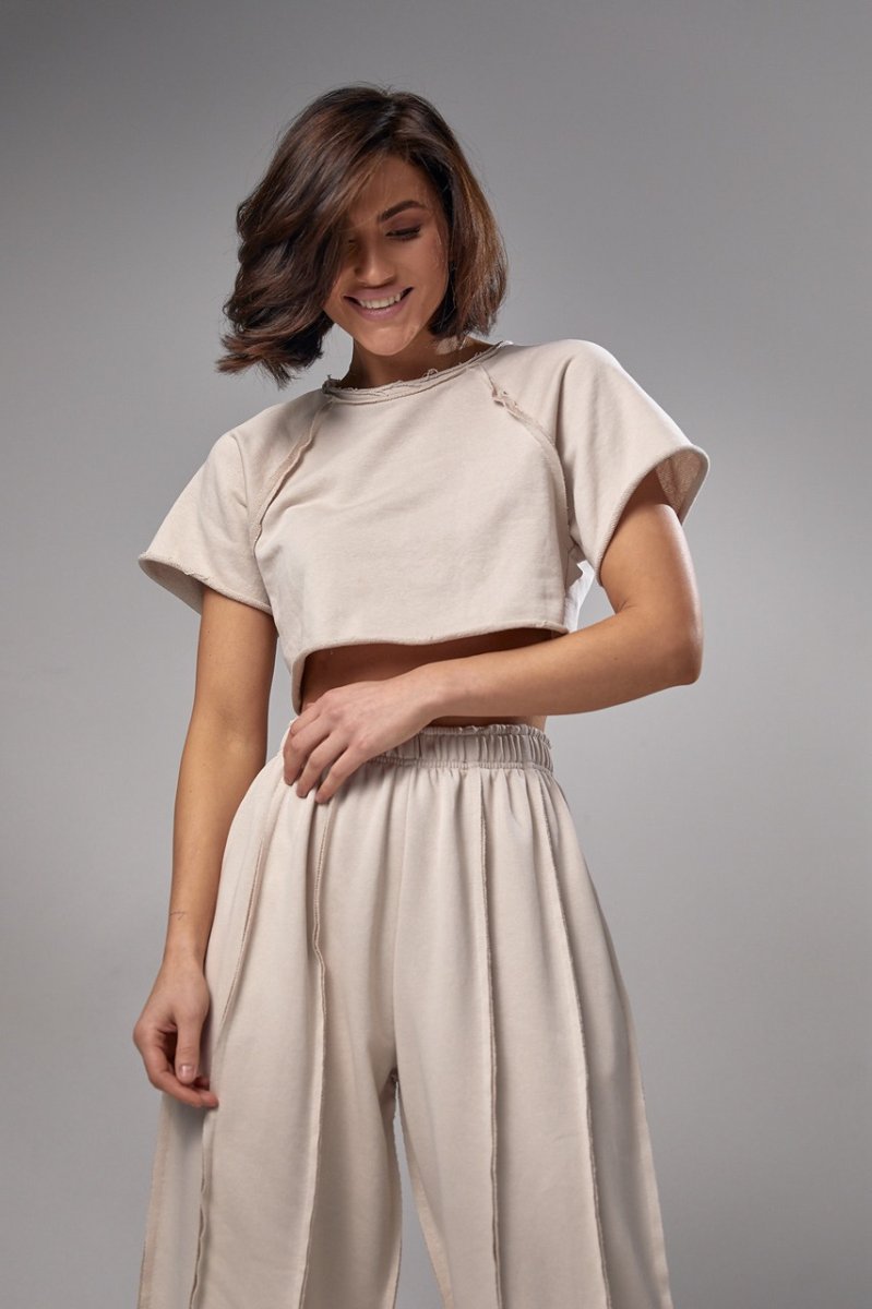 Верх костюму складається з укороченої футболки, краї якої йдуть без підгину, та вільних штанів із широкою резинкою в поясі. У бічних швах зверху присутні прорізні кишені.