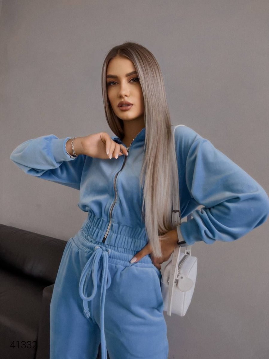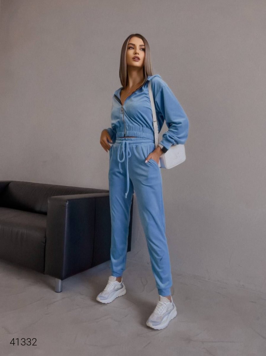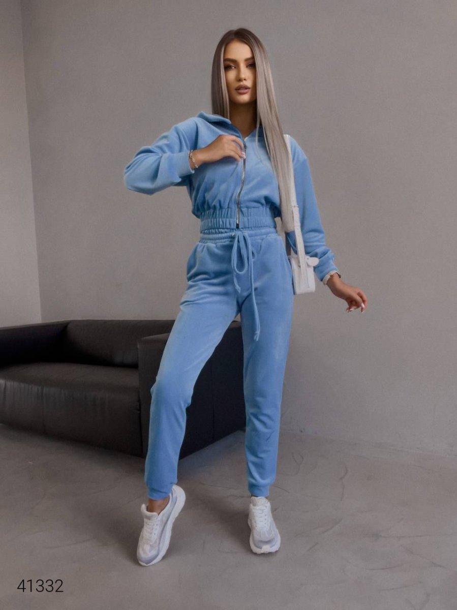 Жіночий велюровий костюм. Кофта на блискавці з капюшоном і штани.