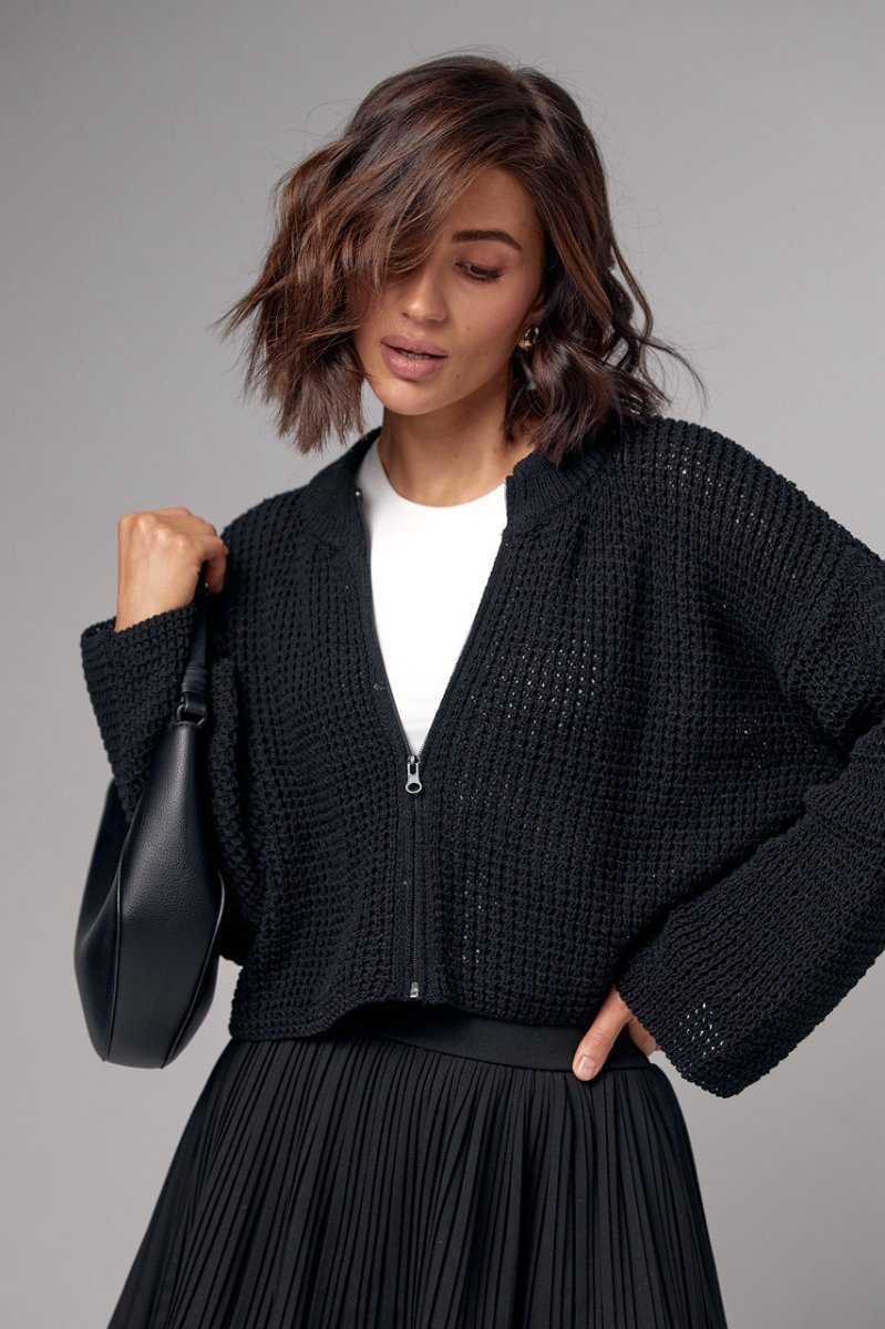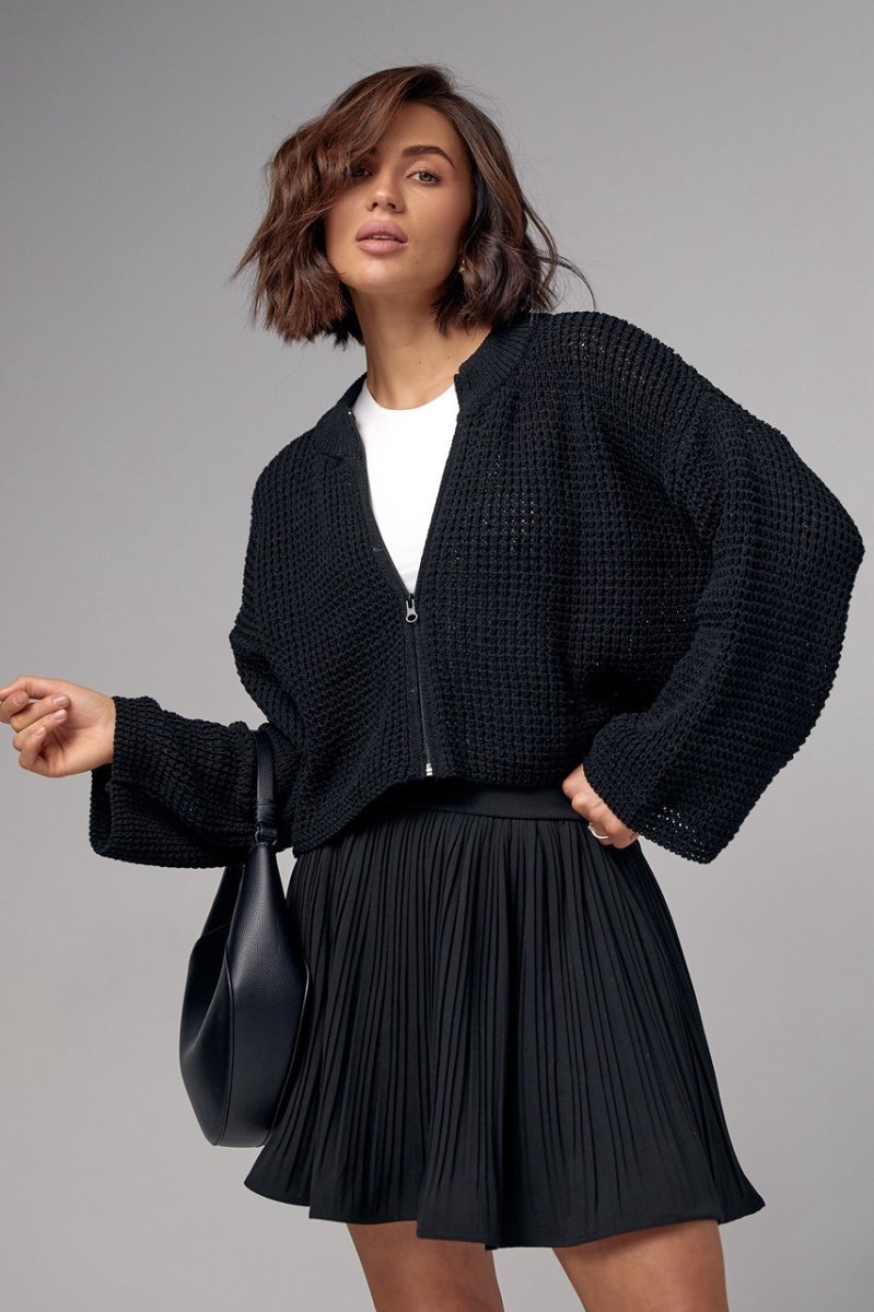 Жіночий в'язаний кардиган на блискавці - 9361 чорний