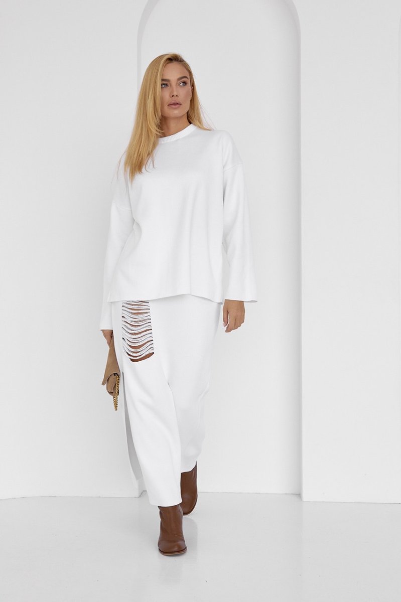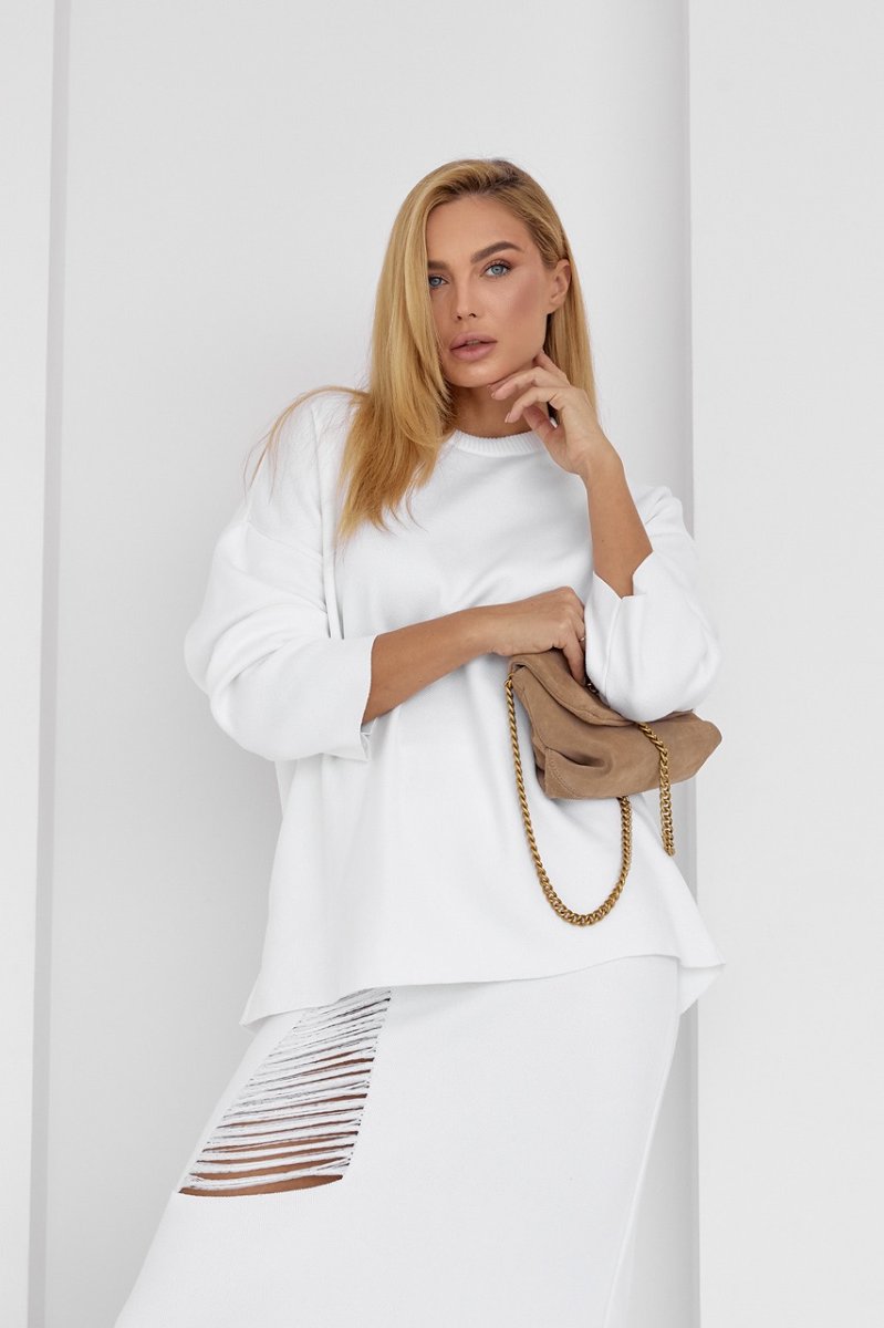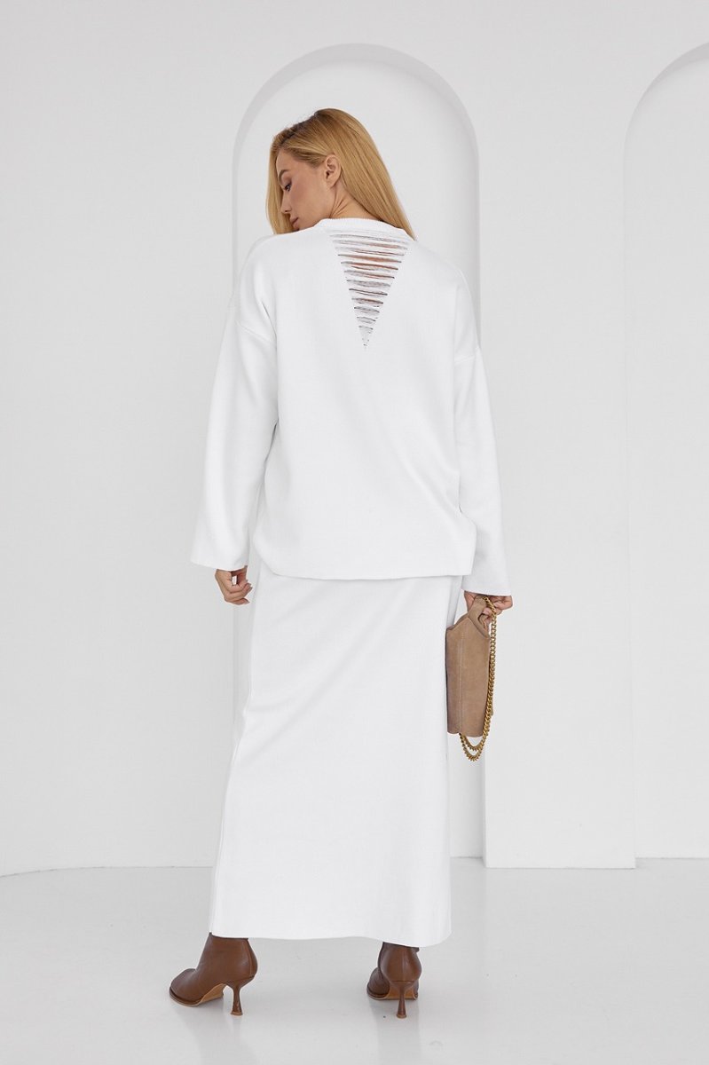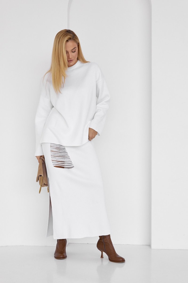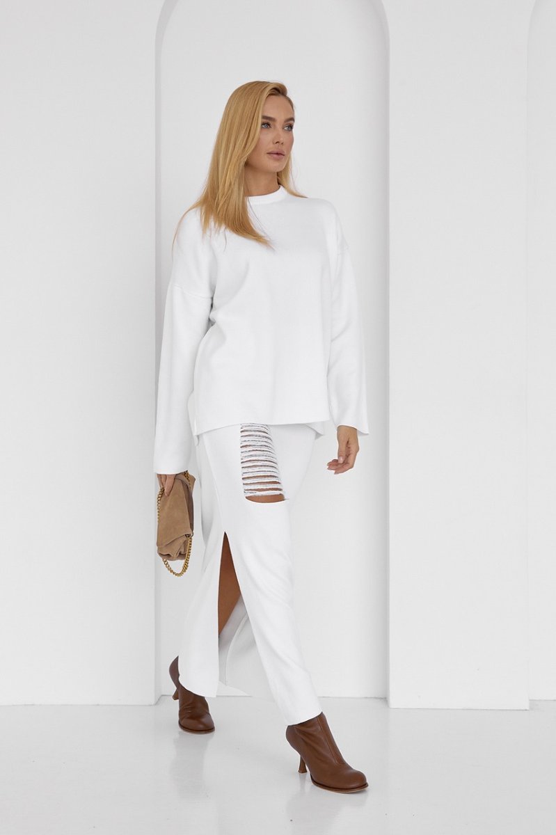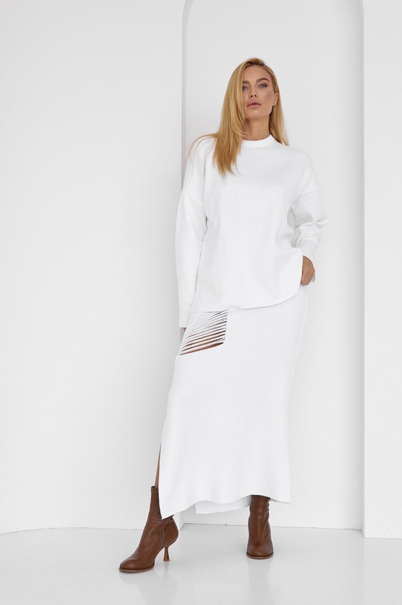 Оригінальний костюм-двійка, що складається з вільного джемпера і прямої спідниці з розпіркою - твій готовий до виходу look, який ти також можеш комбінувати з іншим модним одягом.
