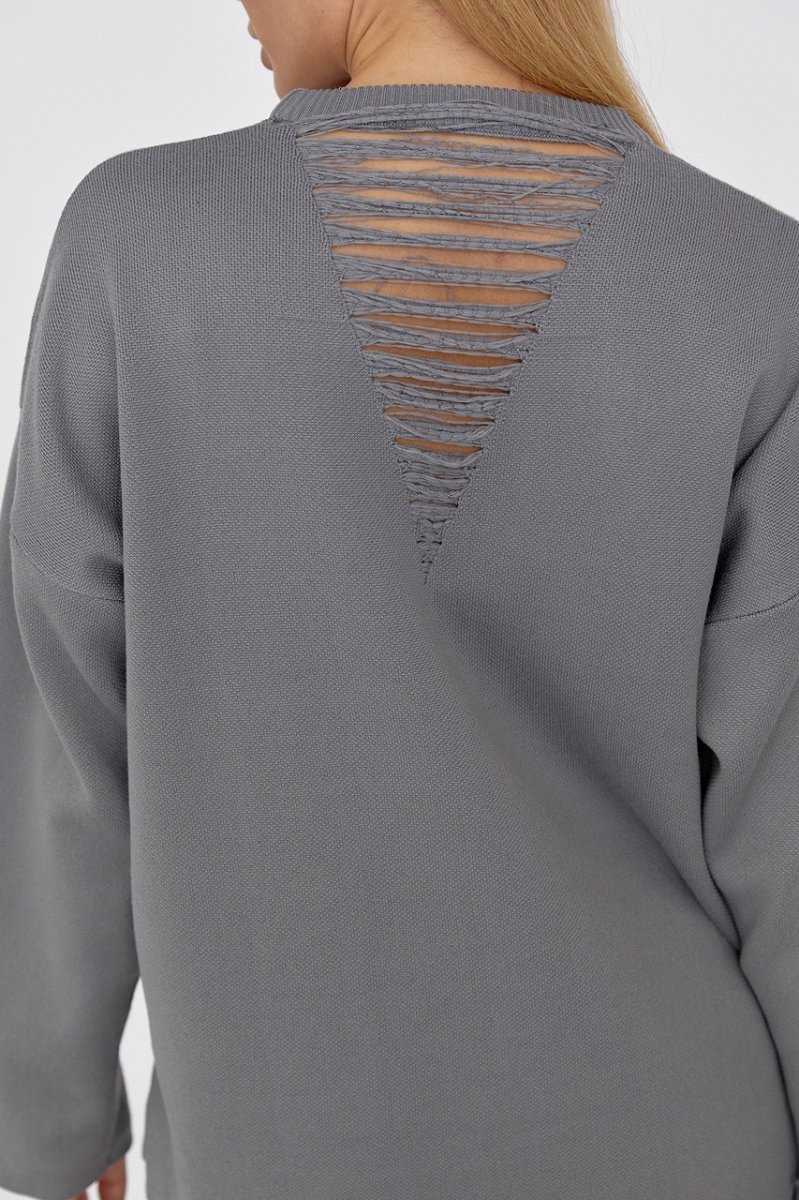 Перша причина закохатися в нашу новинку – приємна на дотик тканина. Друга – ідеальний oversize крій, який не лише на піку популярності, а й подарує максимум комфорту. Третя причина – оригінальний декор у вигляді вирізів на спідниці та спинці джемпера з нитками, які розташовані рядами. І, нарешті, четверта причина – можливість носити окремо кожну річ та отримати ще більше варіантів вражаючих образів!