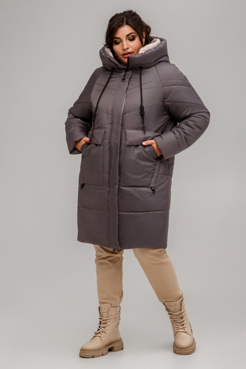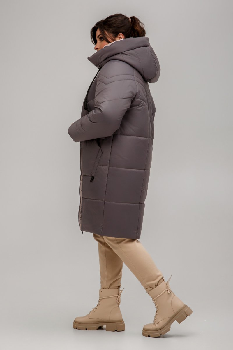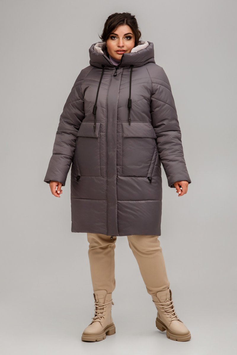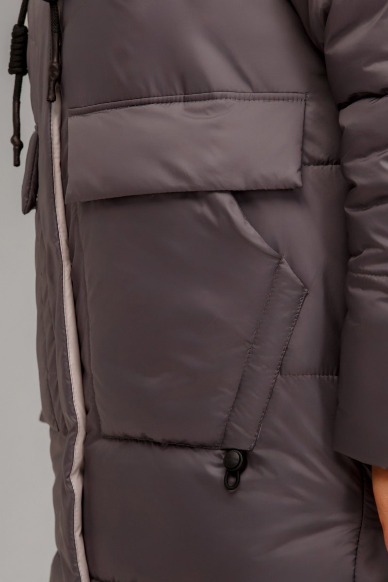 Зимове пальто прямого силуету, звужена до низу. Рукав - реглан, одношовний із внутрішнім манжетом з рібани. Застібка на двосторонню блискавку додатково закривається клапаном з потайними кнопками.