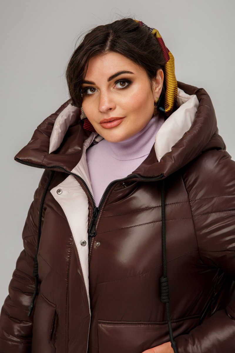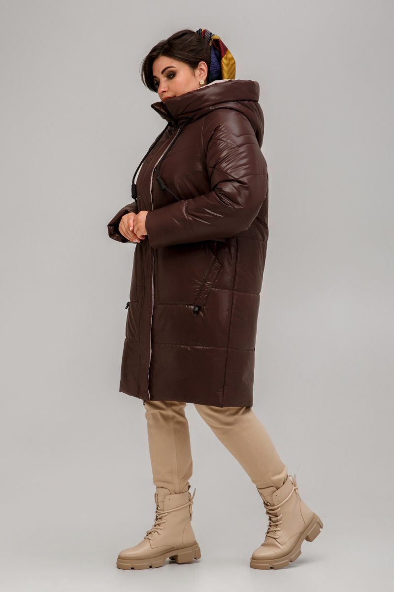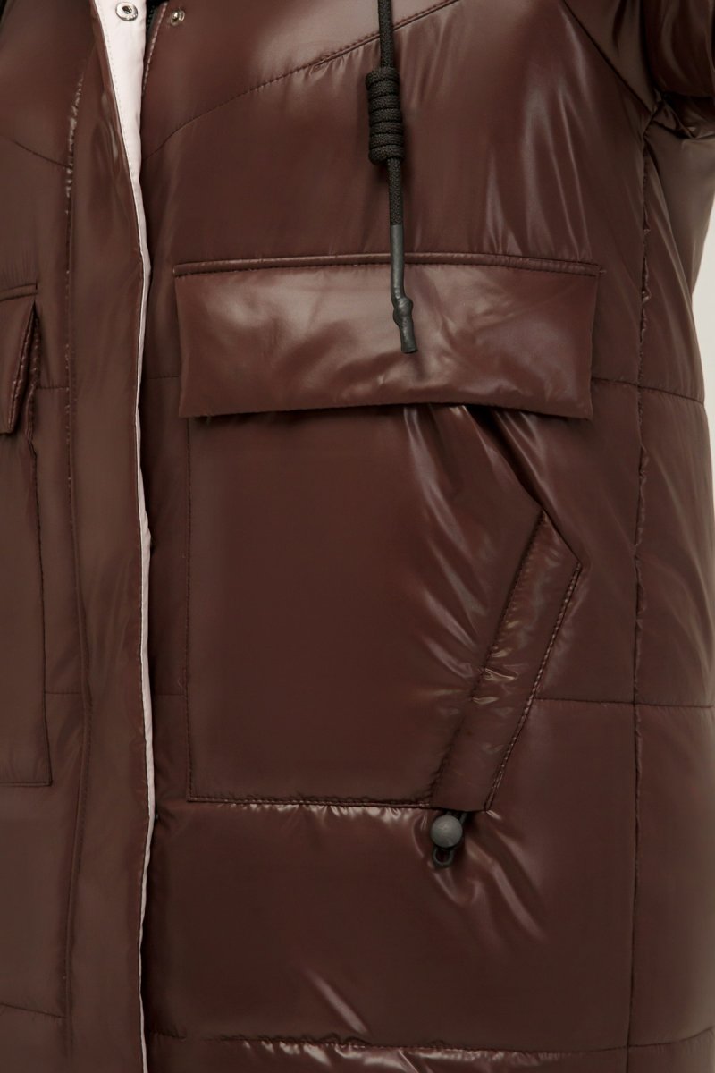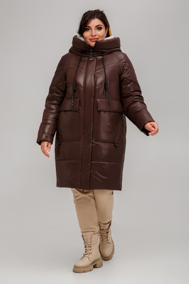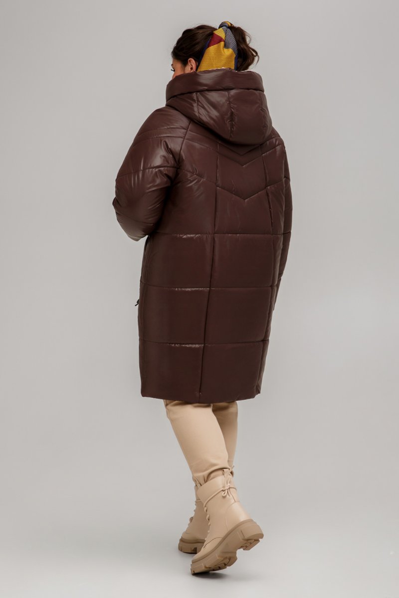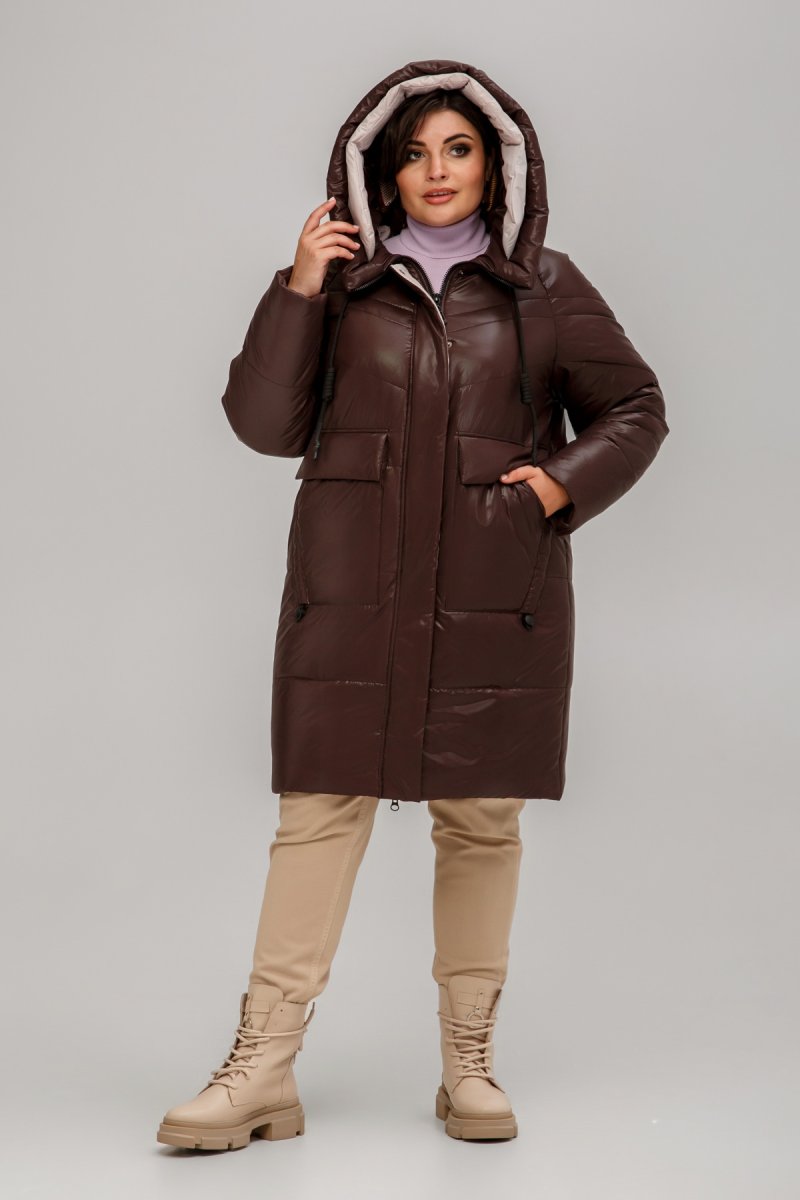 Зимове пальто прямого силуету, звужена до низу. Рукав - реглан, одношовний із внутрішнім манжетом з рібани. Застібка на двосторонню блискавку додатково закривається клапаном з потайними кнопками.