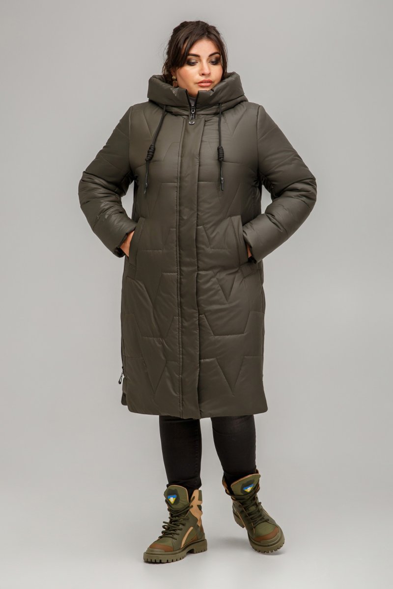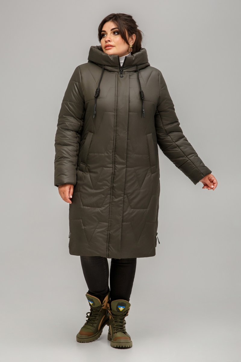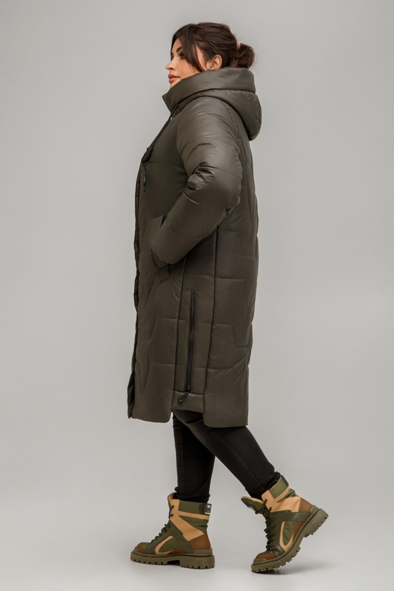 Зимове пальто прямого силуету із плащової тканини. Застібка на двосторонню блискавку та клапан із потайними кнопками, що додатково захищає від вітру. Рукав втачний, двошовний, всередині виконані манжети з рібани.