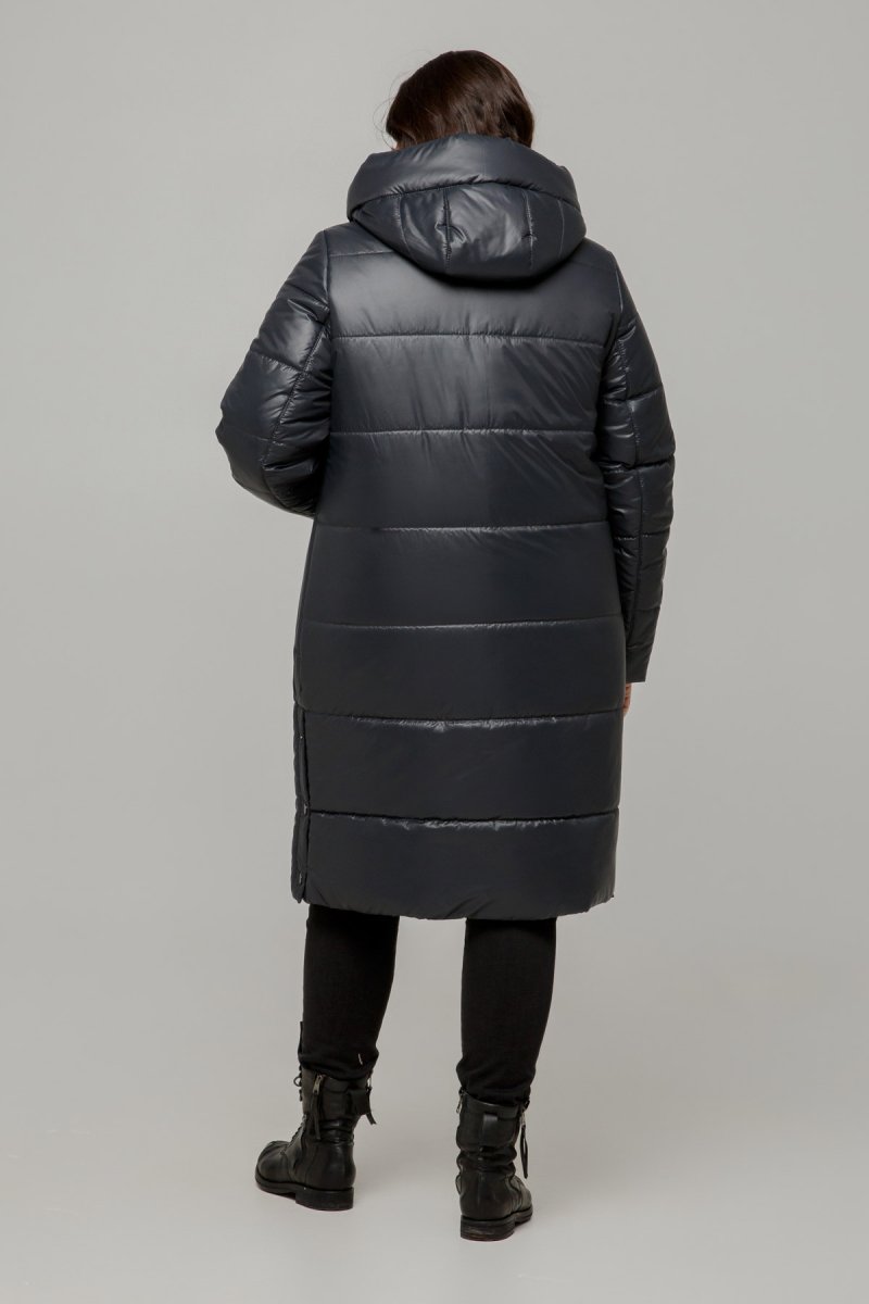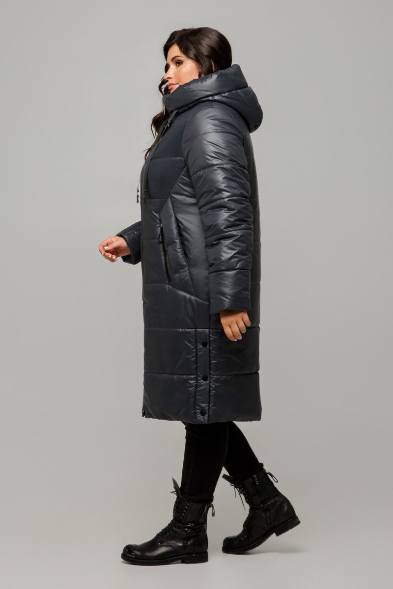 Зимове пальто прямого силуету із застібкою на блискавку. Рукави втачні двошовні. По полиці підрізи, в яких виконані кишені з клапанами, декоровані закріпками та змійками.