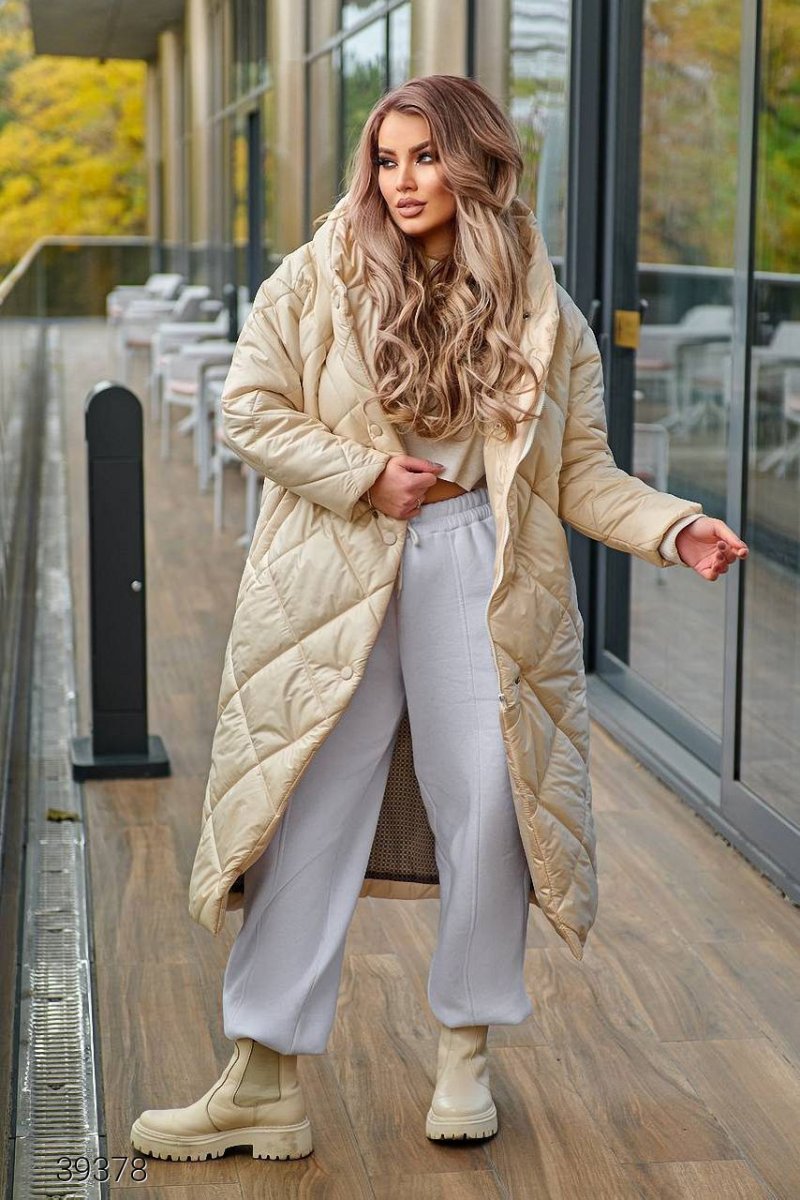 Зимове жіноче пальто. Застібається на блискавку та кнопки. Тканина: плащівка стьобана на синтепоні 250 г.м2 з підкладом.