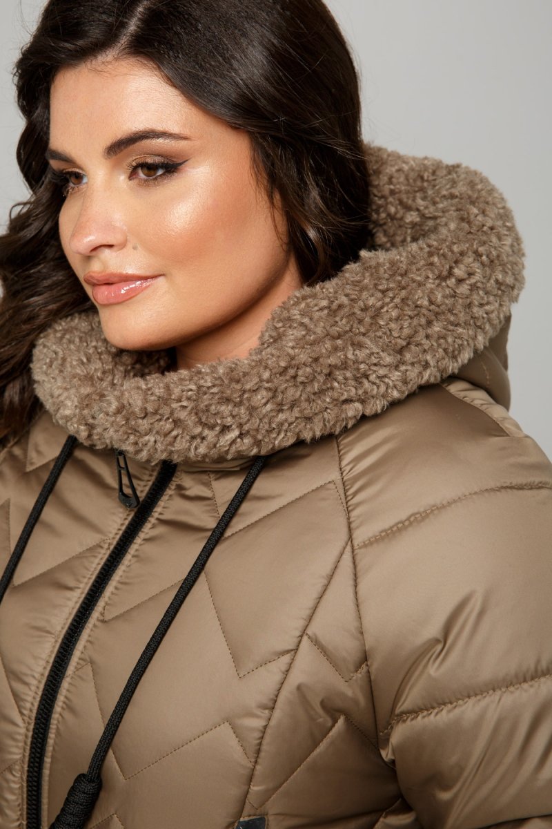 Рукав- реглан. Капюшон втачний з хутром. Висота капюшона регулюється за допомогою шнура. Температурний режим: до -20 °C.