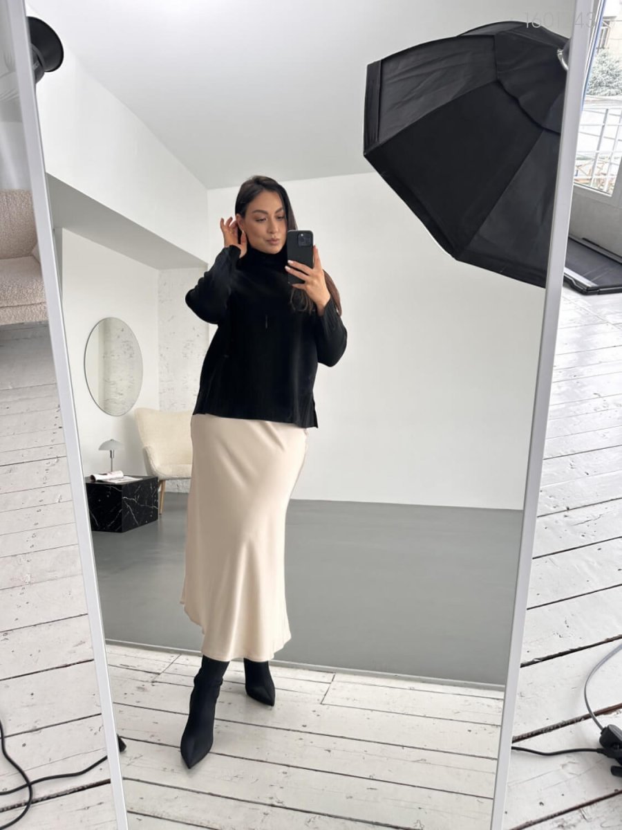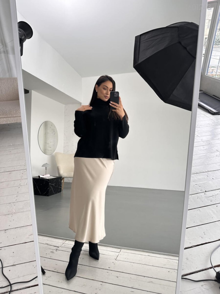 Чёрная юбка №5 из шёлк-сатина