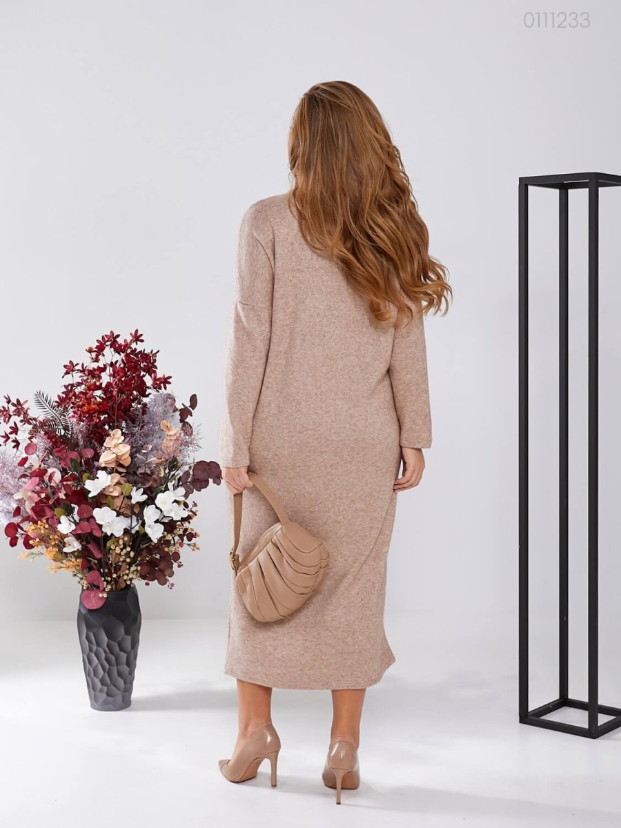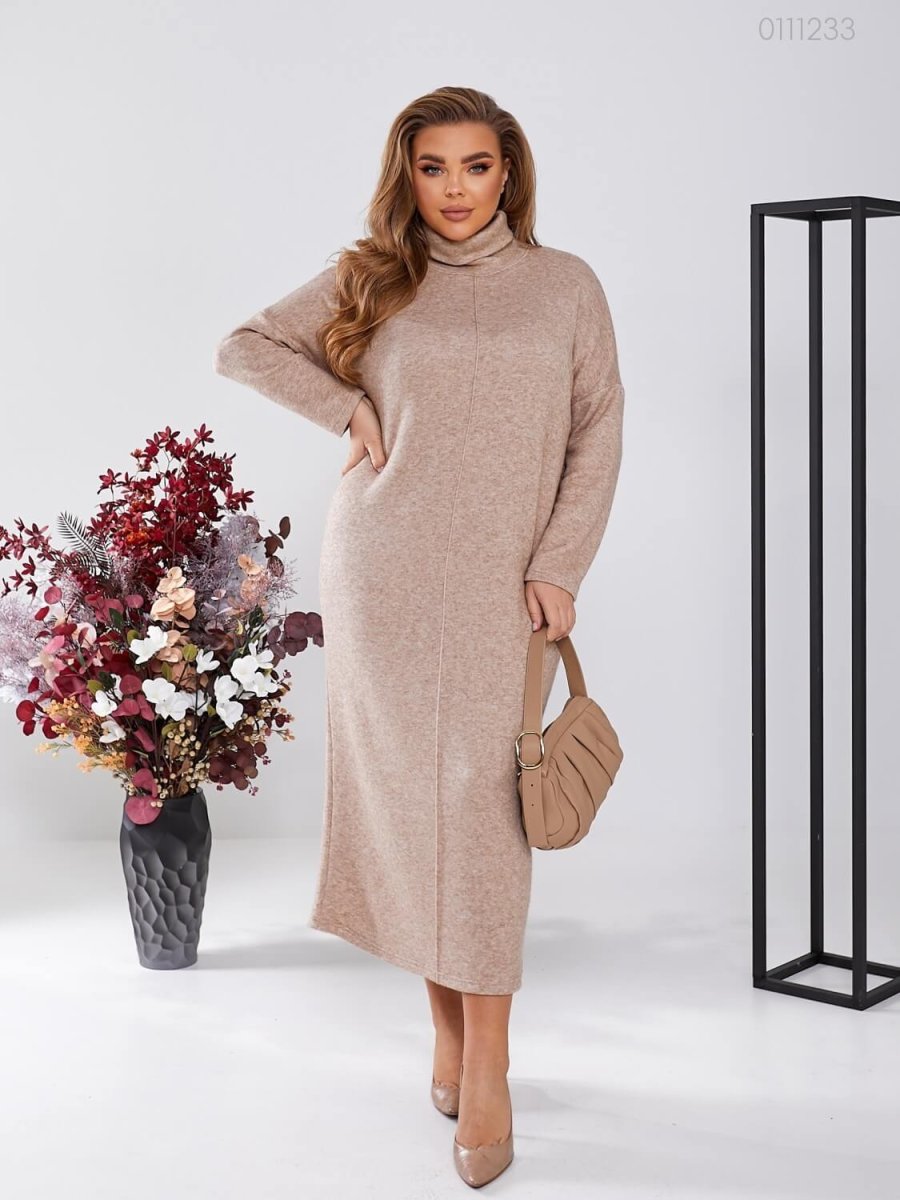 Бежевое платье больших размеров "Лимбург" с двойным высоким горлом
