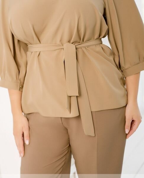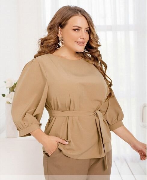 Нежная лаконичная однотонная блуза станет идеальным дополнением вашего базового гардероба. Эта модель дополнена воздушными рукавами длиной 3/4 с манжетами на пуговицах. А как ее носить: подчеркнуть линию талии текстильным поясом, идущим в комплекте или выбрать свободный силуэт – решать только вам.