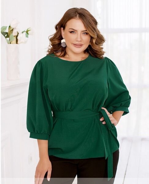 Нежная лаконичная однотонная блуза станет идеальным дополнением вашего базового гардероба. Эта модель дополнена воздушными рукавами длиной 3/4 с манжетами на пуговицах. А как ее носить: подчеркнуть линию талии текстильным поясом, идущим в комплекте или выбрать свободный силуэт – решать только вам.