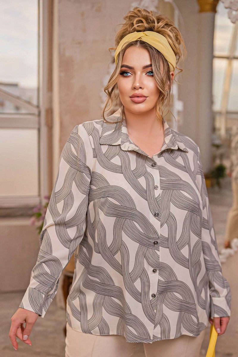 Женская классическая блузка рубашечного кроя. Застёгивается на пуговицы. Рукава на манжетах, отложный воротник. Прямой силуэт блузы подходит к брюкам или юбке немного зауженного кроя.