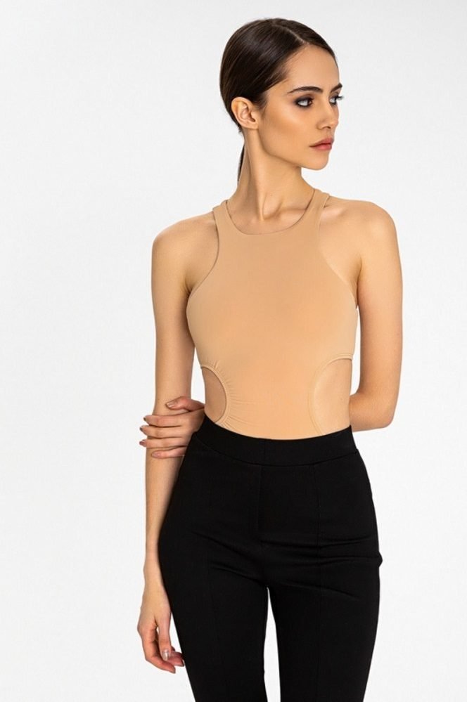 Боди открытого фасона с округлым вырезом горловины, высоким вырезом по бокам и открытыми плечами. Застегивается на крючки. Эффектное боди станет главным акцентом любого модного образа!