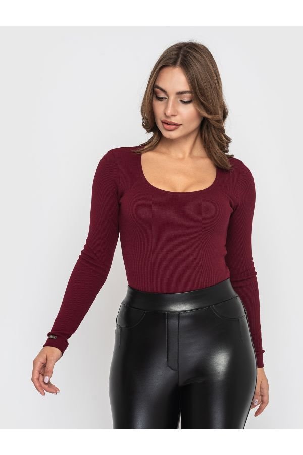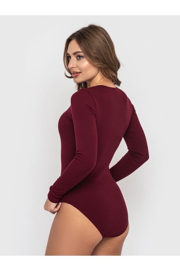 Боди с U-образным вырезом горловины. Застегивается внизу на кнопки. На манжете пришивной металлический элемент с наименованием бренда.