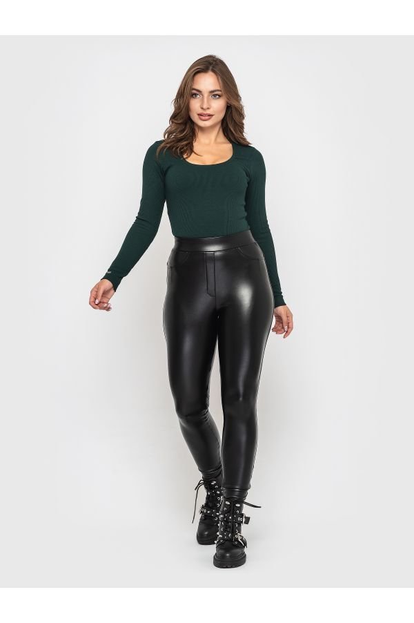 Боди с U-образным вырезом горловины. Застегивается внизу на кнопки. На манжете пришивной металлический элемент с наименованием бренда.