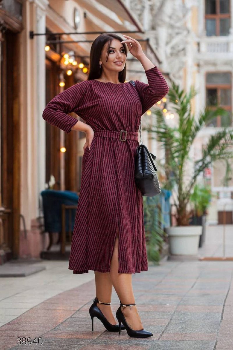 Бордовое ангоровое платье большого размера. Пояс в комплекте.