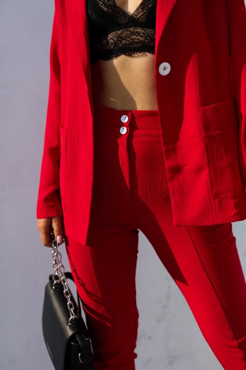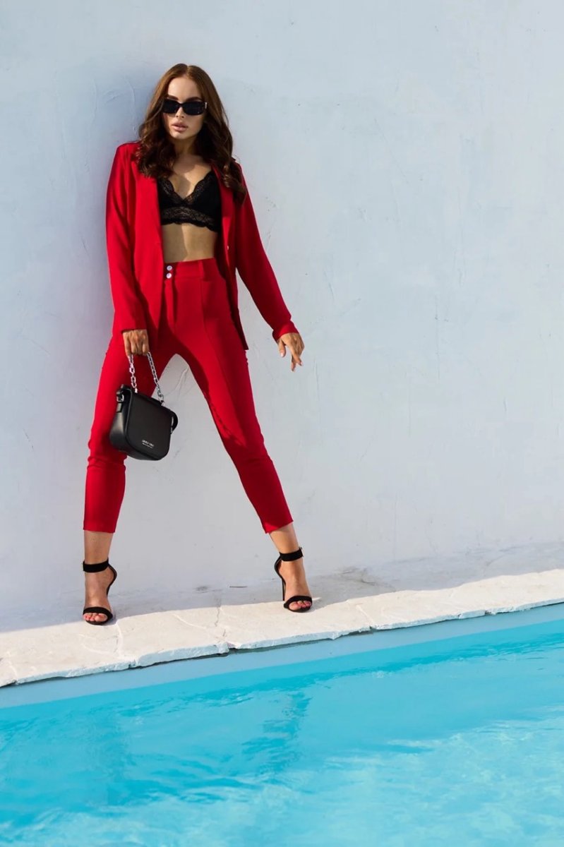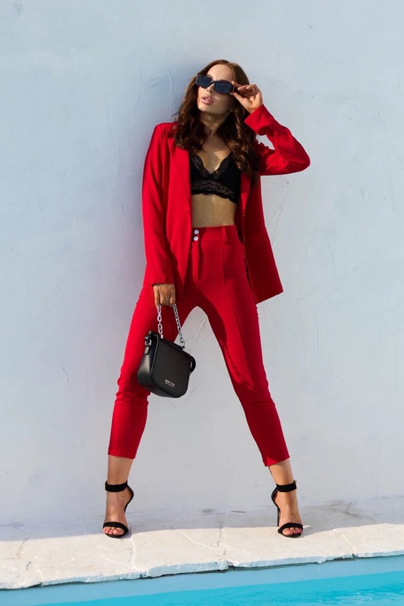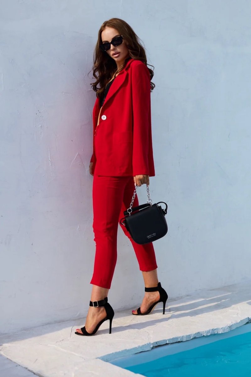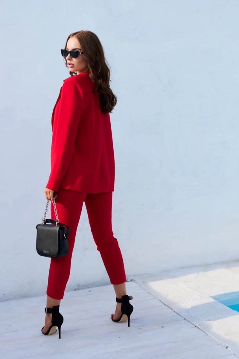 Разбавь свой гардероб яркими красками. Свободного кроя костюм отлично подойдет как для офисной работы, так и для вечерних посиделок с подружками. Брюки идут с завышенной талией, по бокам есть карманы.