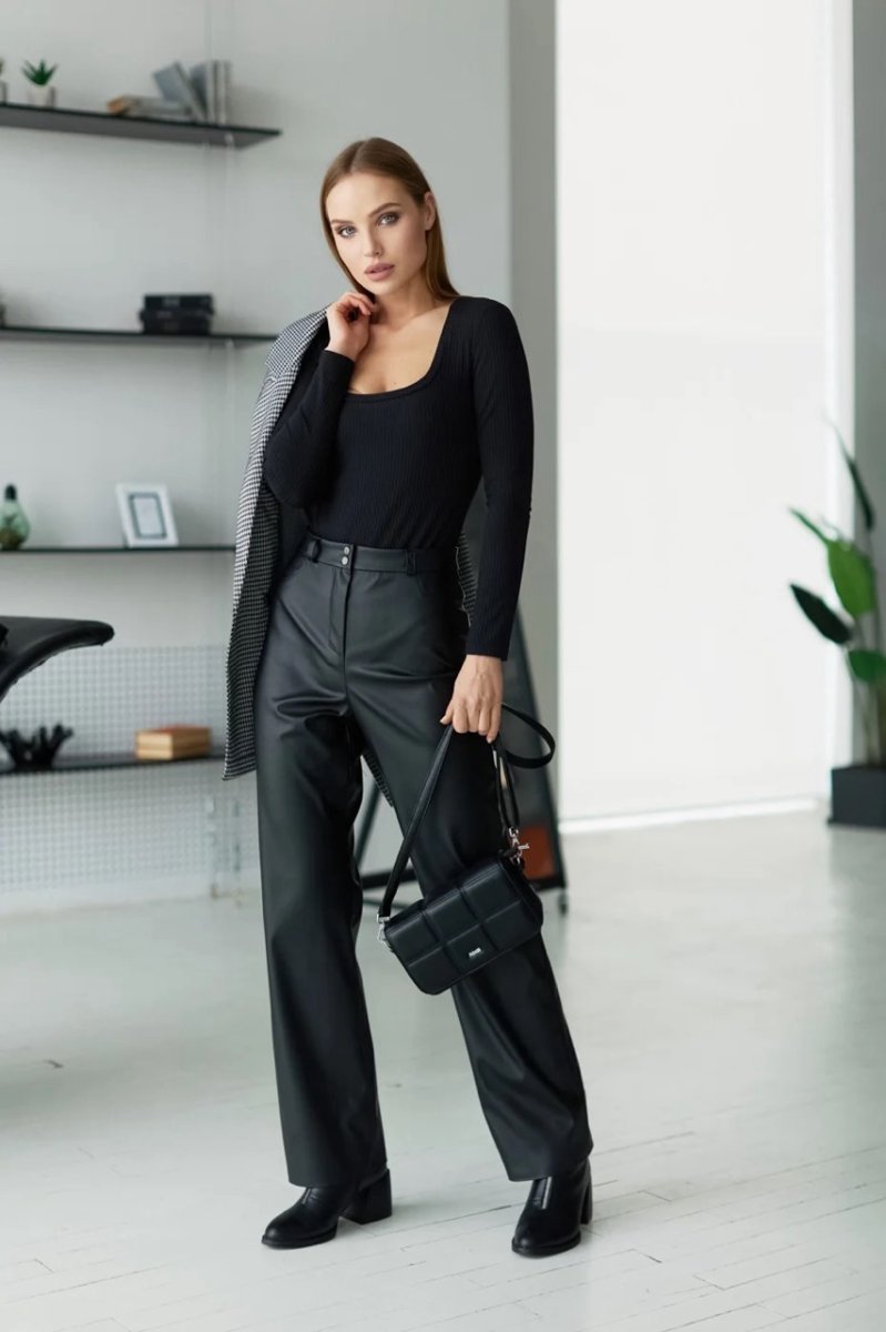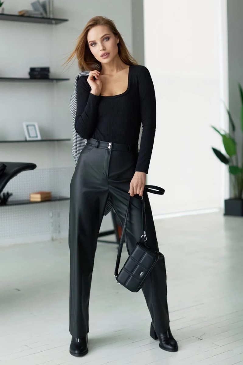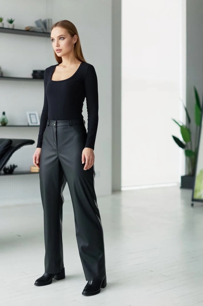 Фасон: брюки прямого кроя, с высокой посадкой, с завышенной талией