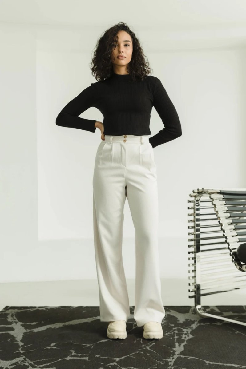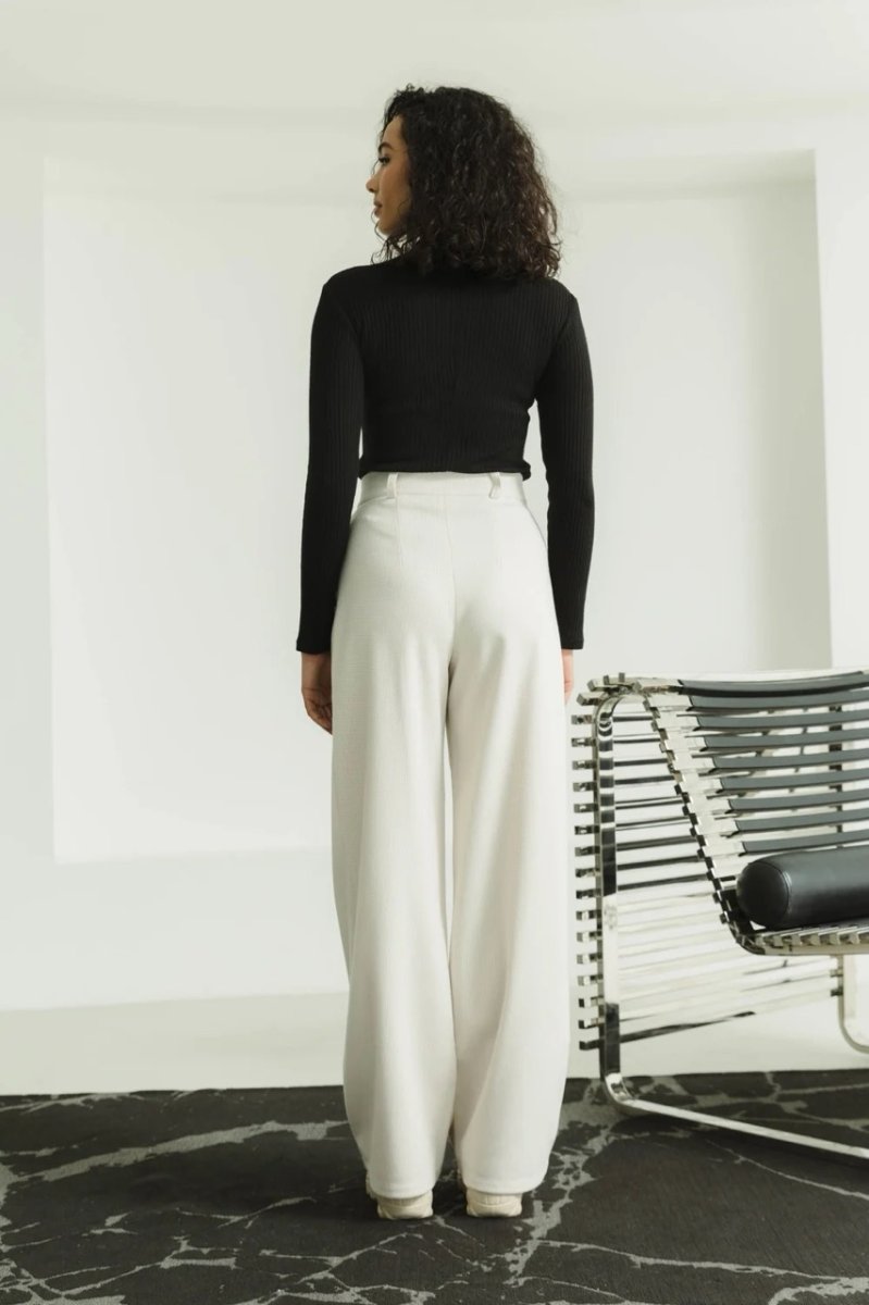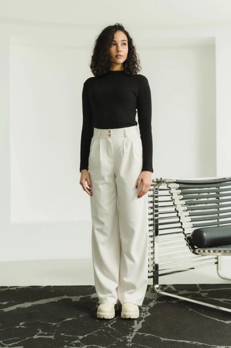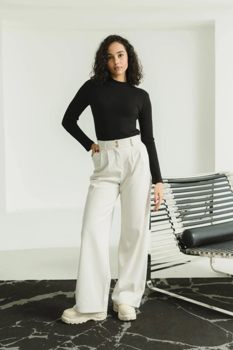 Фасон: широкие брюки, расклешенный, с высокой посадкой, с карманами.