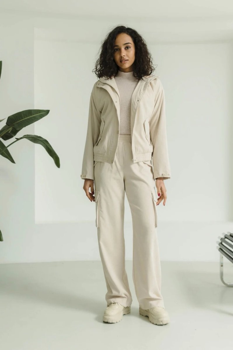Конструктивные элементы: накладные карманы, пояс на резинке