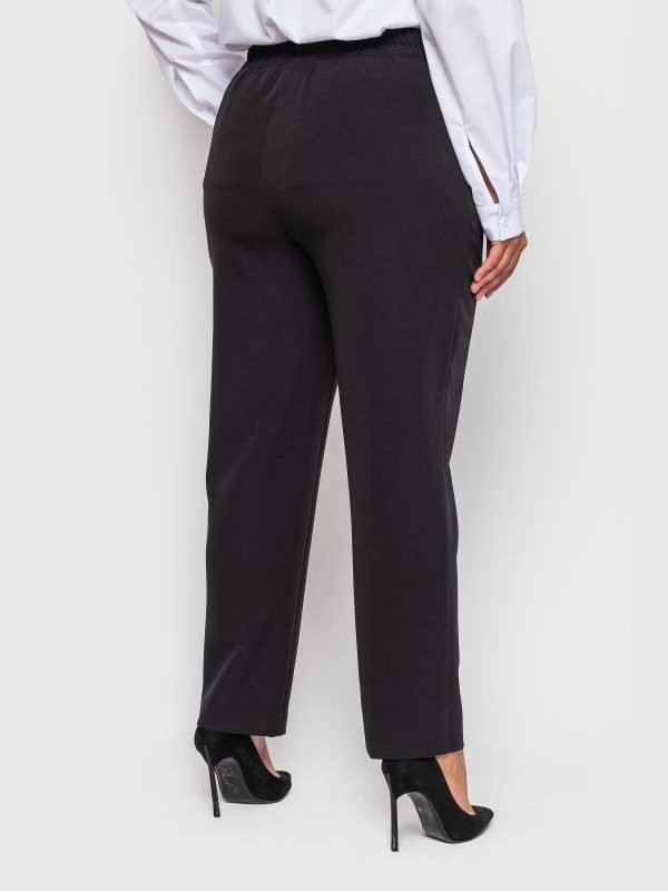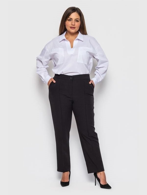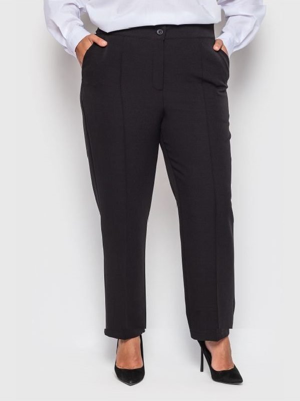 Классические укороченные брюки прямого кроя высокой посадки. Модель со стрелками делает ножки стройнее. Пояс притачной, по спинке эластичный с удобной мягкой резинкой. По бокам косые карманы.