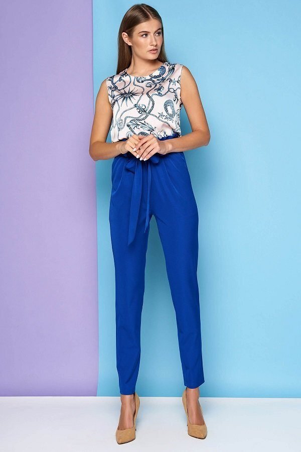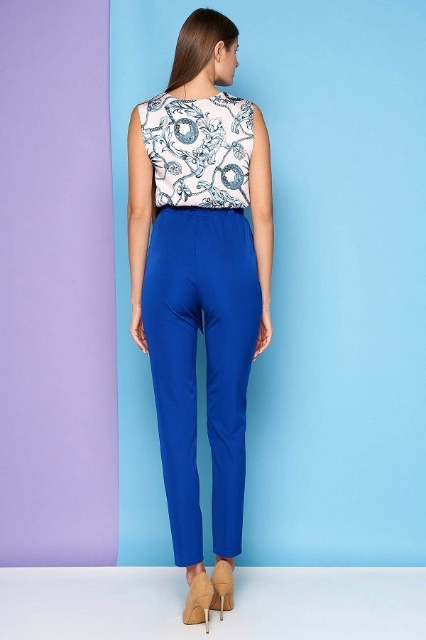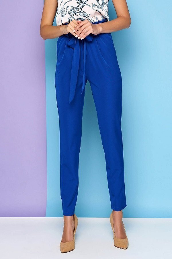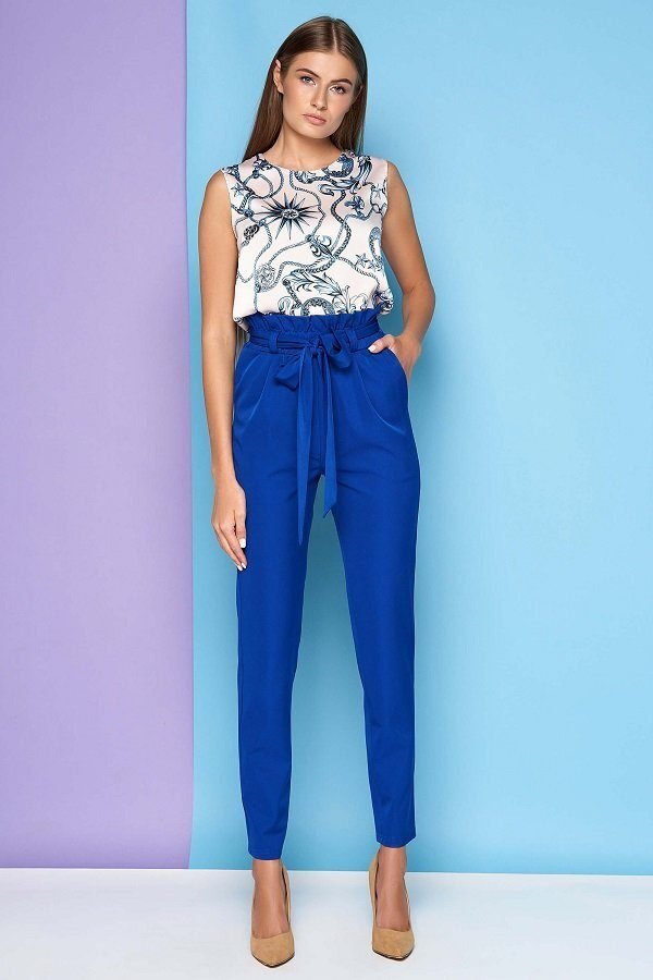 Брюки прямого кроя, слегка заужены к низу с высокой посадкой. Необходимая и универсальная вещь в гардеробе, которая будет хорошо сочетаться с любым верхом. По бокам изделия находятся два врезных кармана. Так же в комплект входит пояс, который дополнит ваш образ.