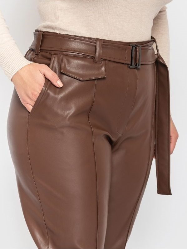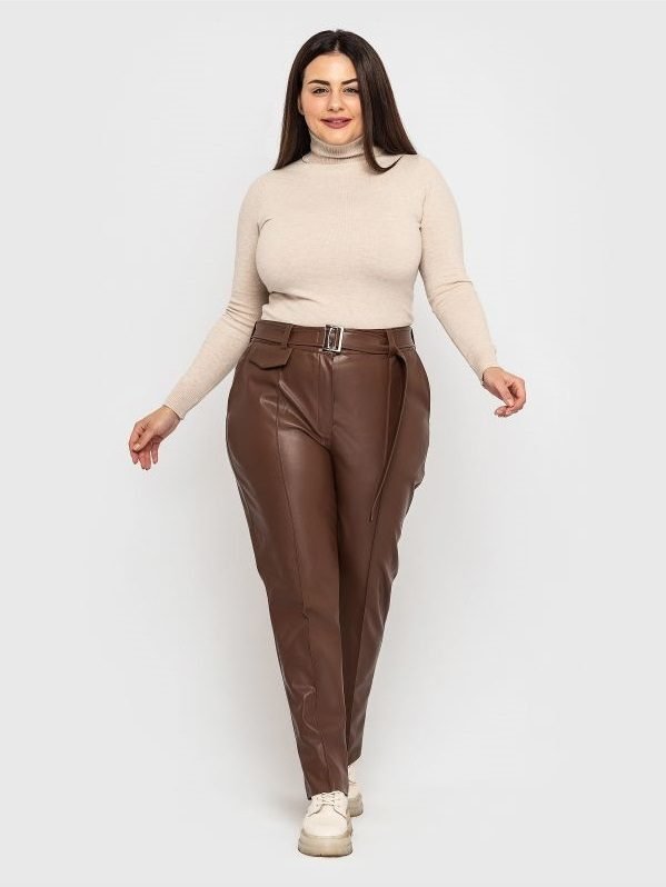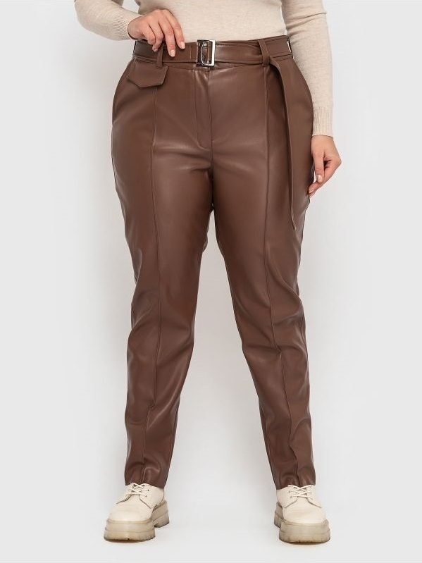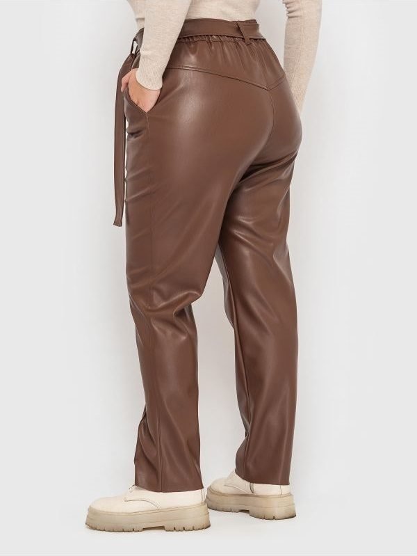 Брюки кожаные женские плюс сайз "Сит" (мокко)