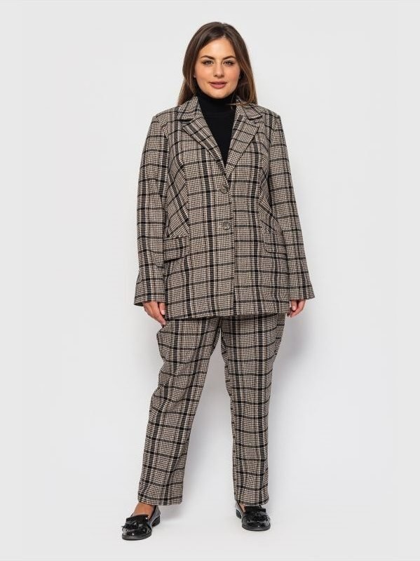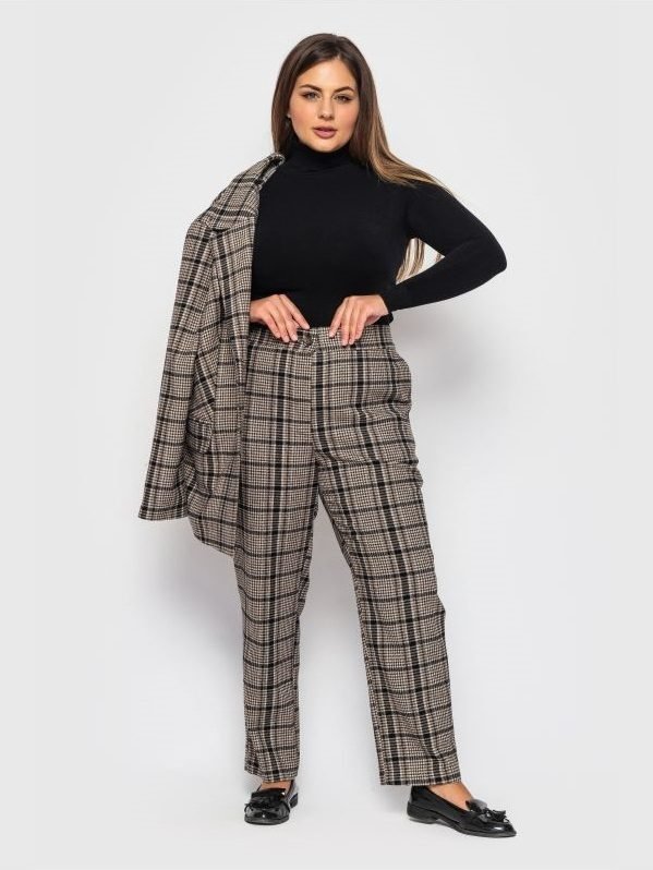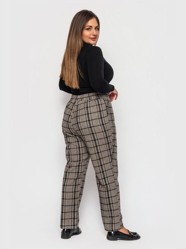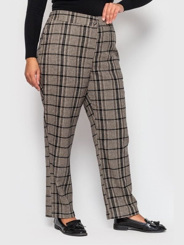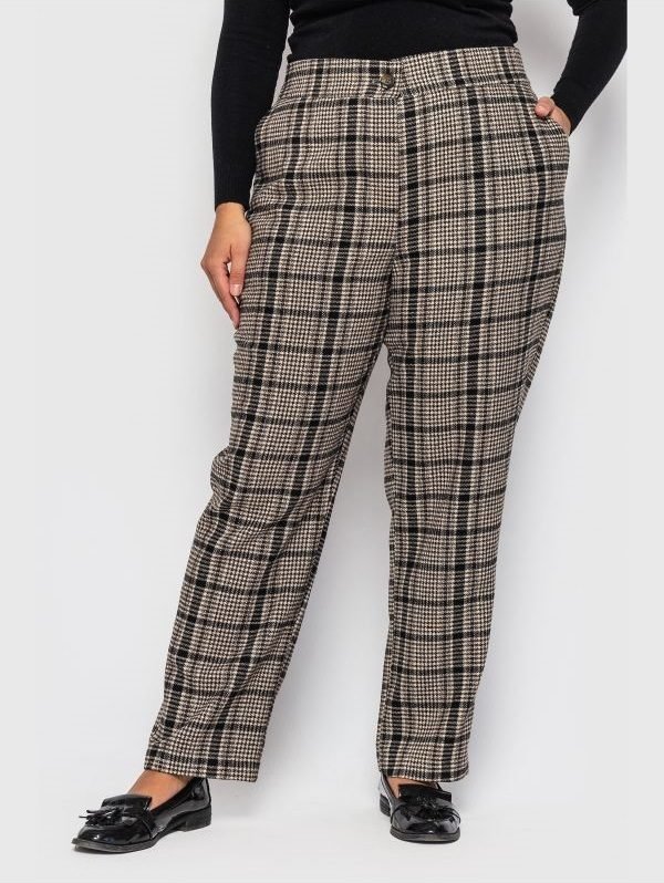 Теплые брюки прямого кроя высокой посадки. Застегиваются на пуговицу и молнию. По бокам косые карманы. Притачной пояс по спинке на мягкой, перестроченной резинке.