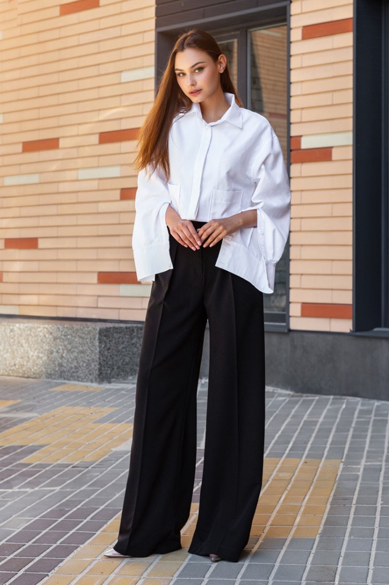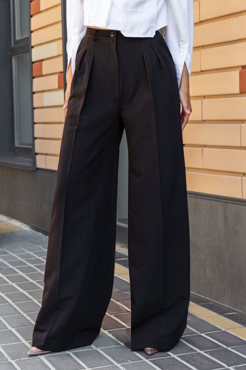Стильные брюки в стиле палаццо – выходят в базовых цветах, гармонично сочетающихся в ваших образах. Такие брюки просто впишутся не только лишь в традиционные виды, да и в виды в стиле спорт-шик. Брюки имеют широкий крой, среднюю посадку и карманы по бокам. Дизайн завершают фиксированные стрелки спереди.