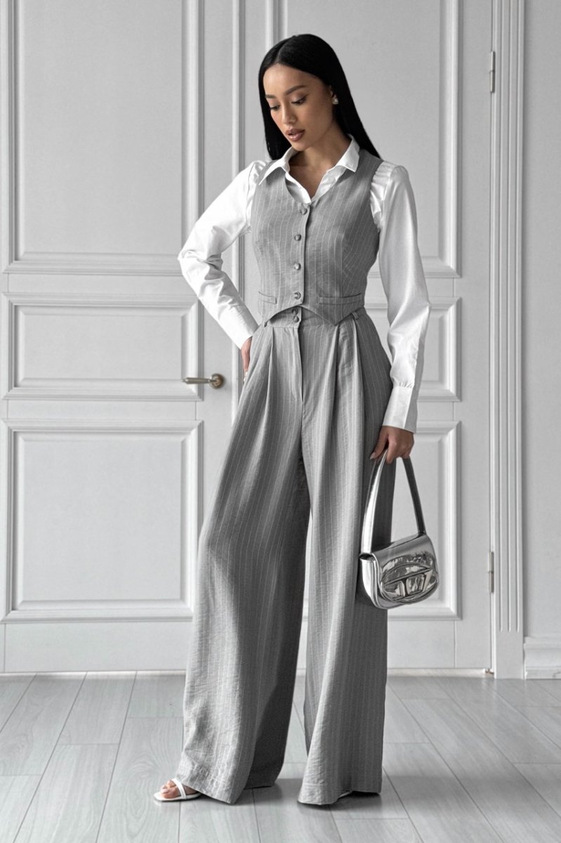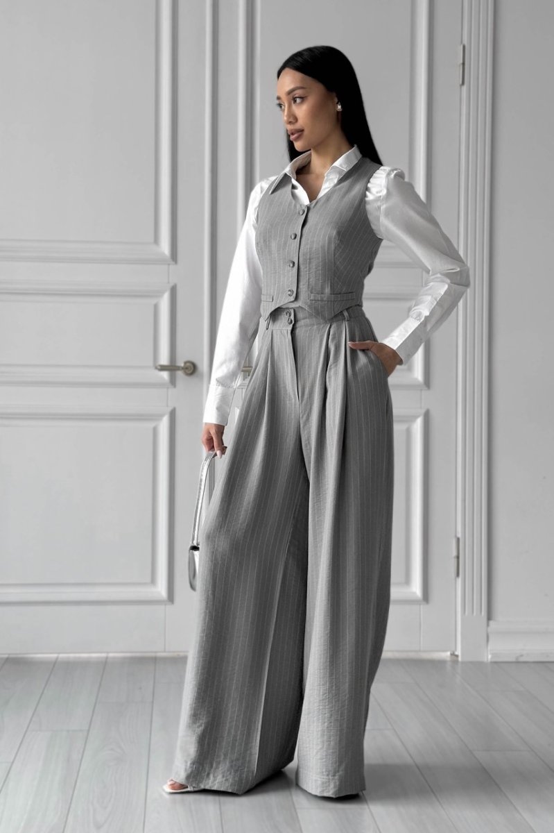 Классические брюки-палаццо прямого кроя, со складками по переду. Модель с комфортной посадкой станет базовым элементом для создания повседневного или делового образа. Модель дополнена удобными боковыми карманами. По спинке на талии – резинка, ширина шлевок – 6 см.