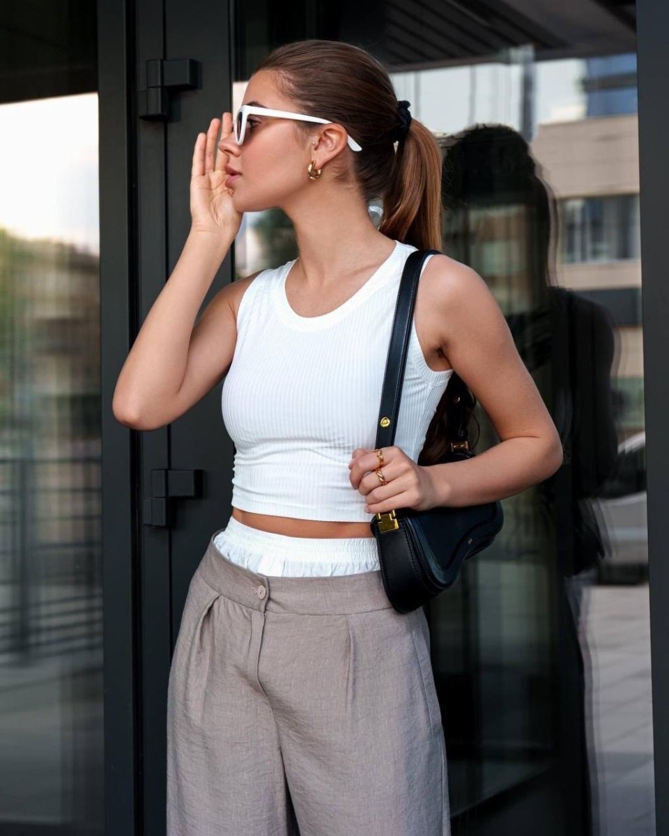 Наша коллекция штанов палаццо из льняного материала – идеальный выбор для стильного и комфортного летнего образа. Пояс с имитацией белья придает оригинальности, карманы в боковых швах, средняя посадка и защелки придают брюкам комфорт. Высокое качество и быстрая доставка гарантированы. Закажите прямо сейчас!