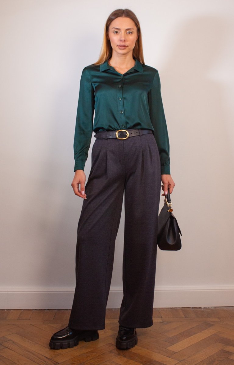 Эти брюки палаццо сделаны из теплого трикотажа, имеют модный дизайн и удобную посадку. Они изготовлены из качественного материала, что обеспечивает комфорт и удобство в течение дня.
