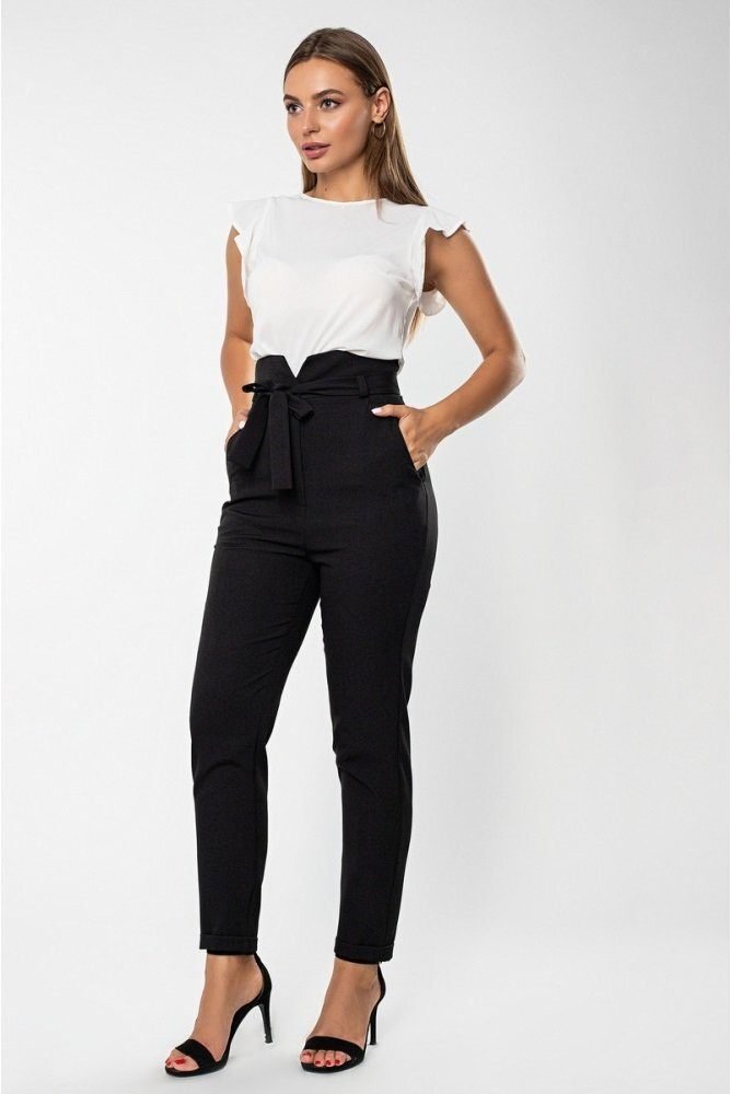 Брюки с боковыми карманами. Застегиваются спереди на молнию и пуговицу, комплектуются поясом.