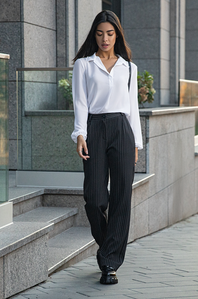 Брюки из костюмной ткани с вместительными боковыми карманами. Застегиваются на молнию и пуговицу спереди.