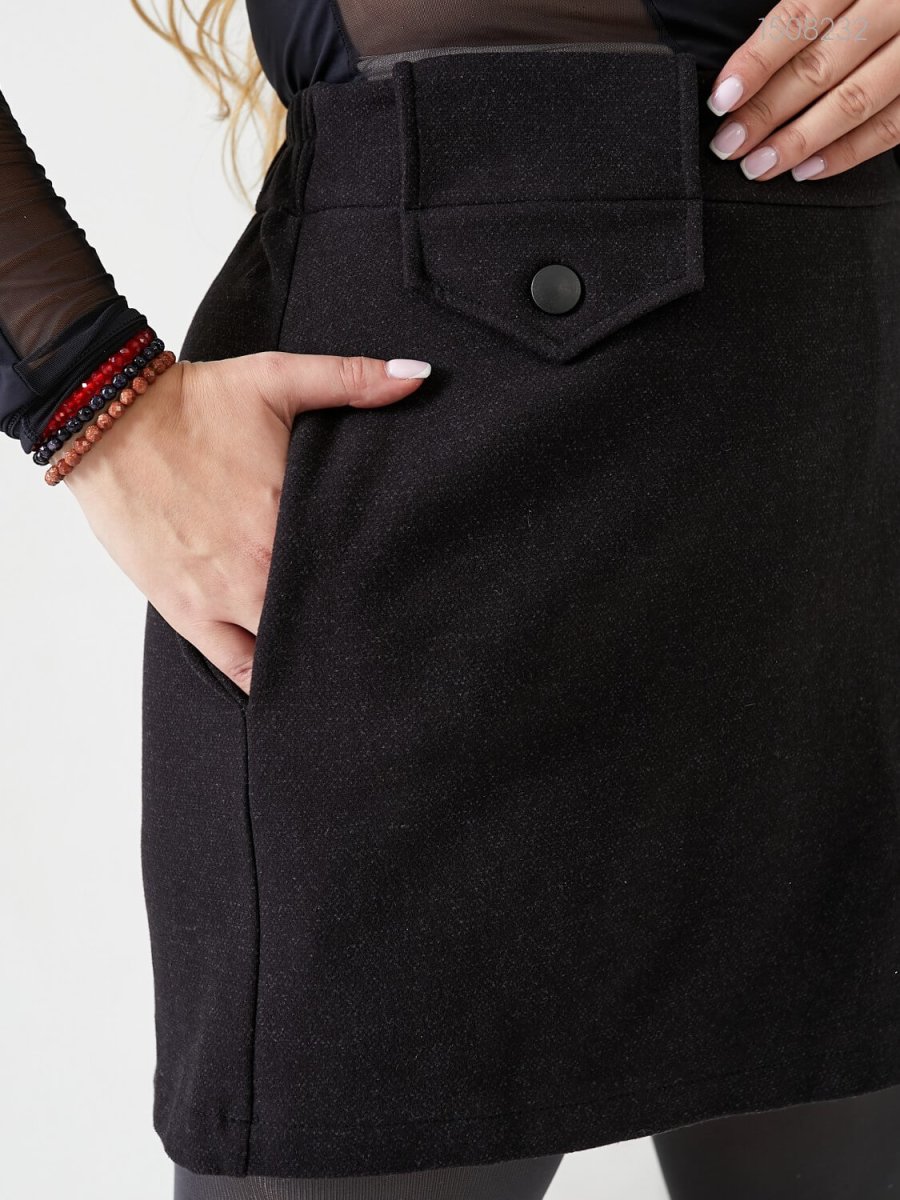 Детали: шорты-юбка высокой посадки, трапециевидной формы, с поясом на резинке по спинке и глубокими карманами в боковых швах.