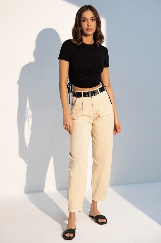 Короткий топ из трикотажа вискозы с драпировкой и завязками сбоку. Модель облегающего фасона с округлым вырезом горловины. Изюминкой модели является фигурный шов, подчеркивающий линию груди. Топ идеально подойдёт для дружеских вечеринок, посиделок в кафе, прогулок по городу.